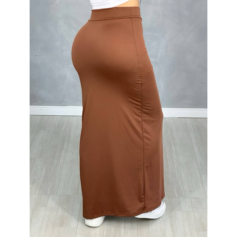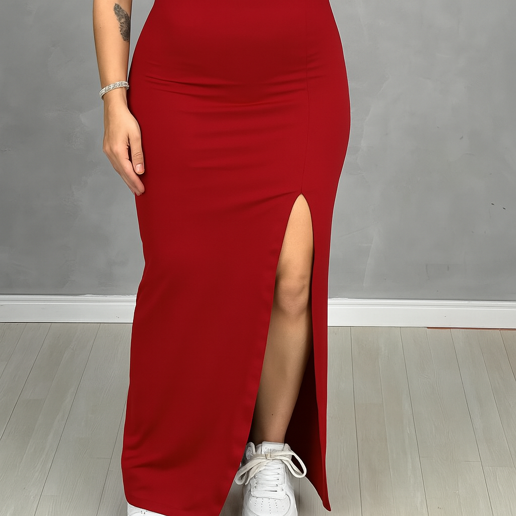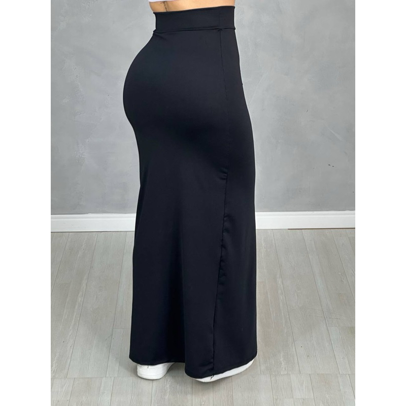 Saia De Cintura Alta Longa Com Fenda Lateral Midi
