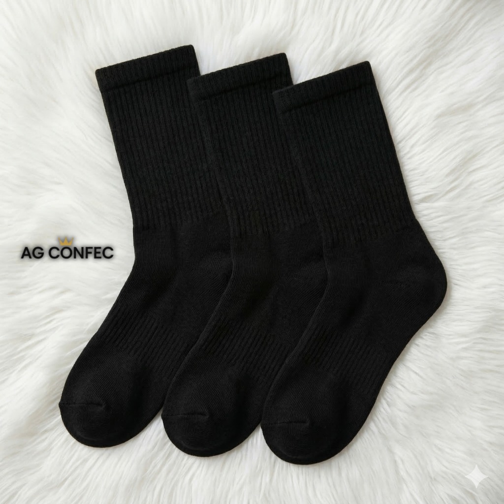 Kit 6/12/18 E 24 Pares Cano Alto Longo Preta Confortável Macia Trabalho com Algodão 36 ao 45