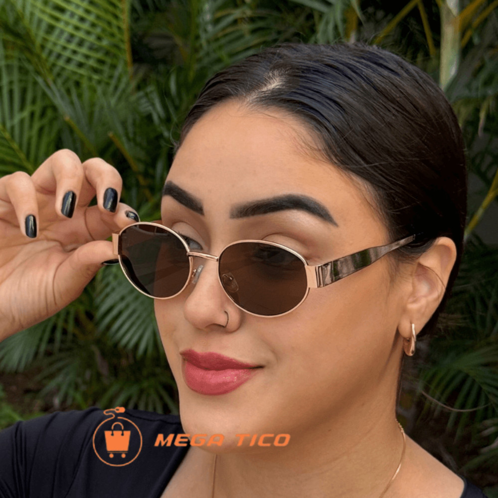 Óculos De Sol Feminino Redondo Armação De Metal Retrô Proteção UV400 Da Moda