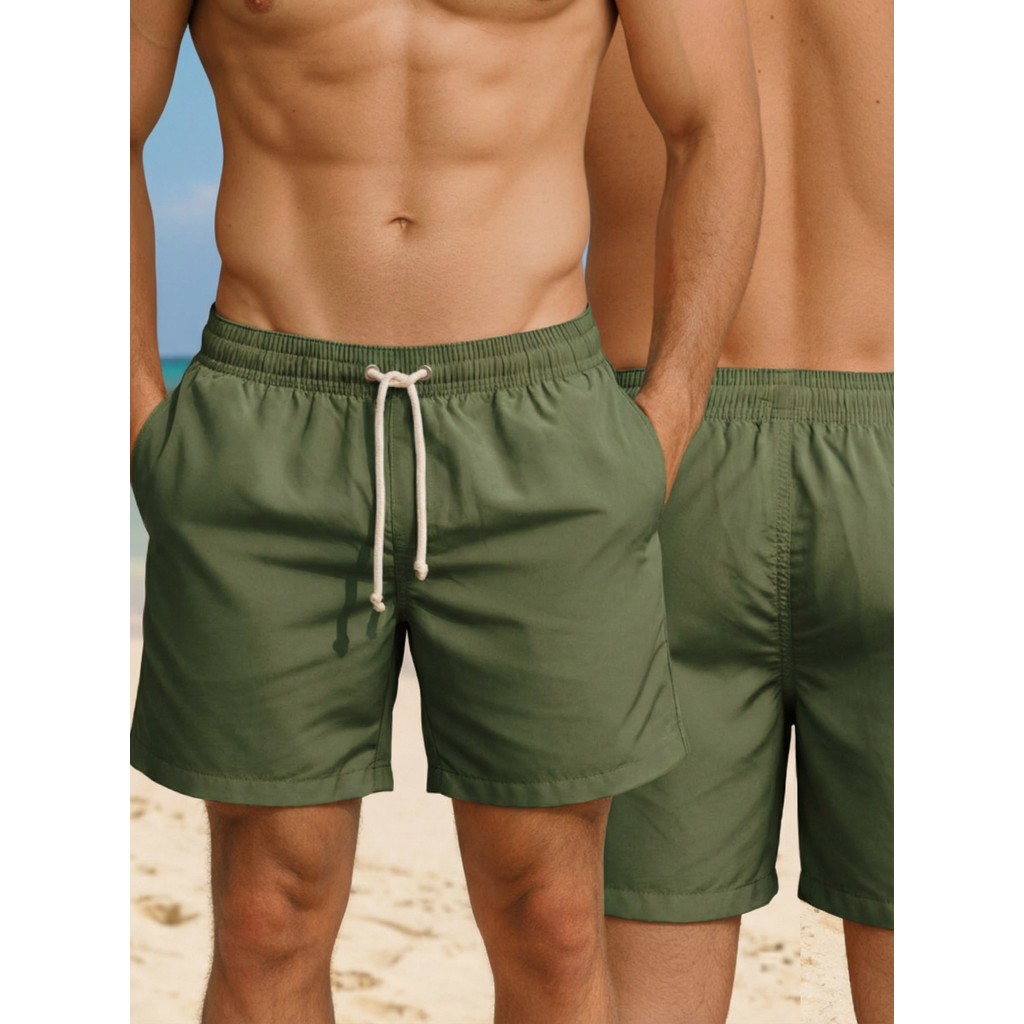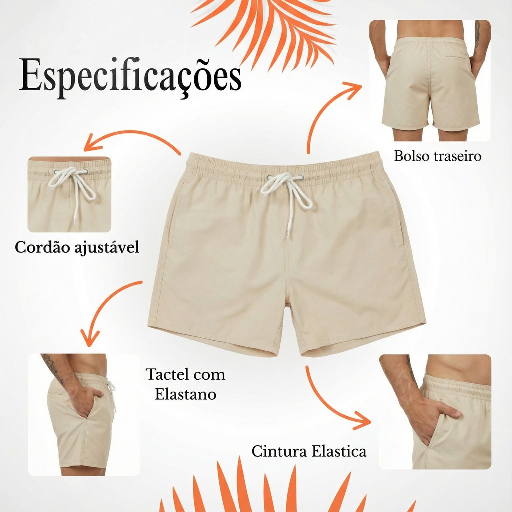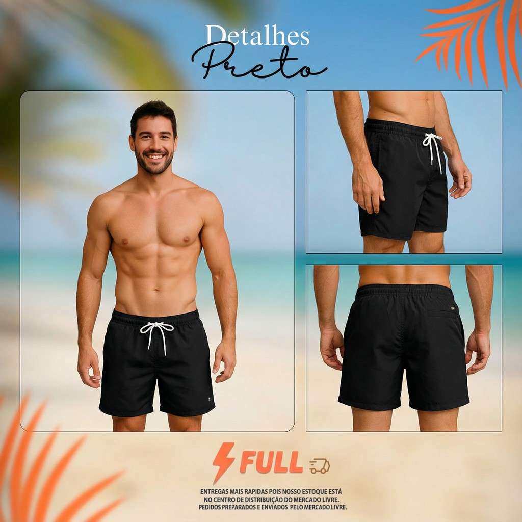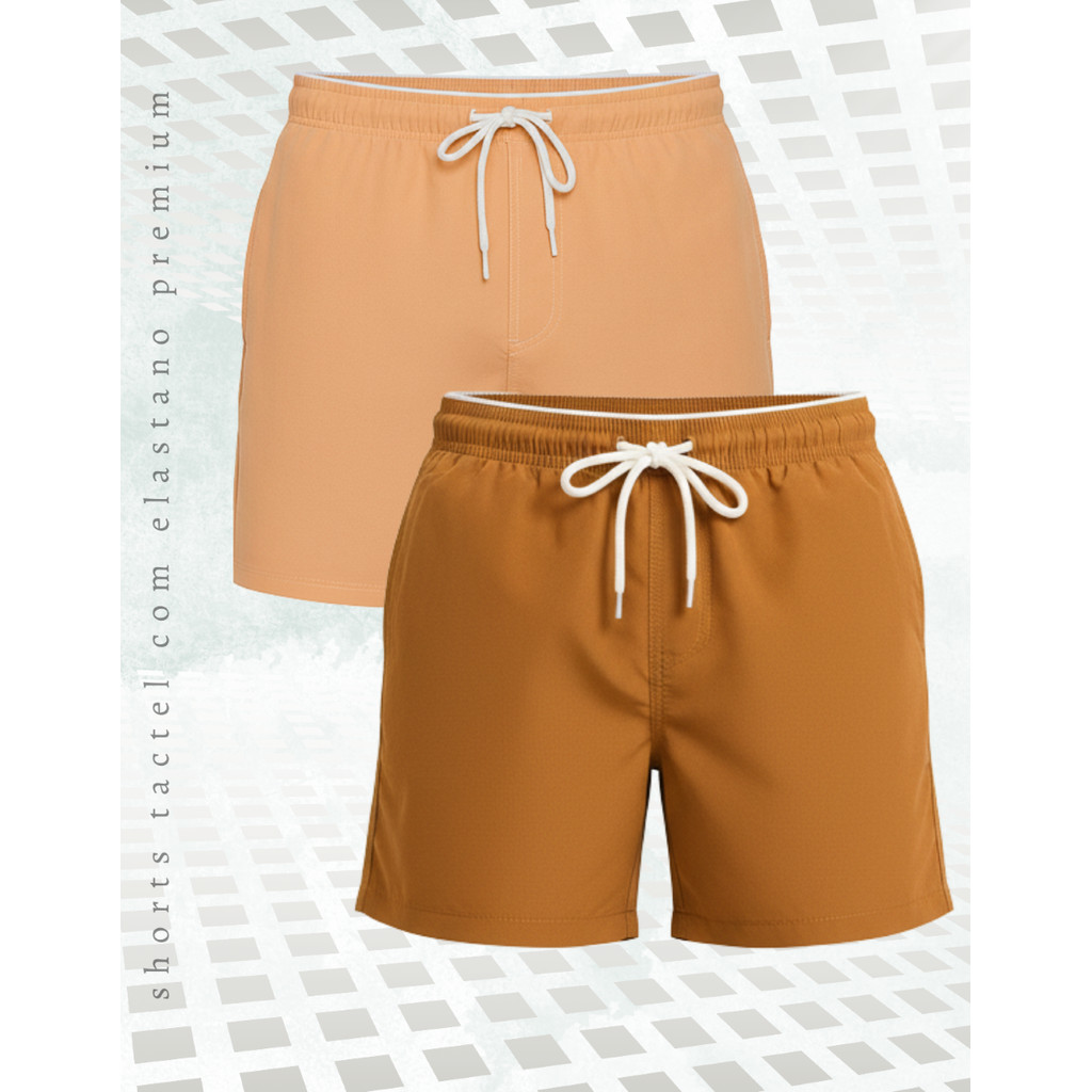 KIT 2 ou 1 Short Elastano Masculino Bermuda Liso Praia Alto Verão