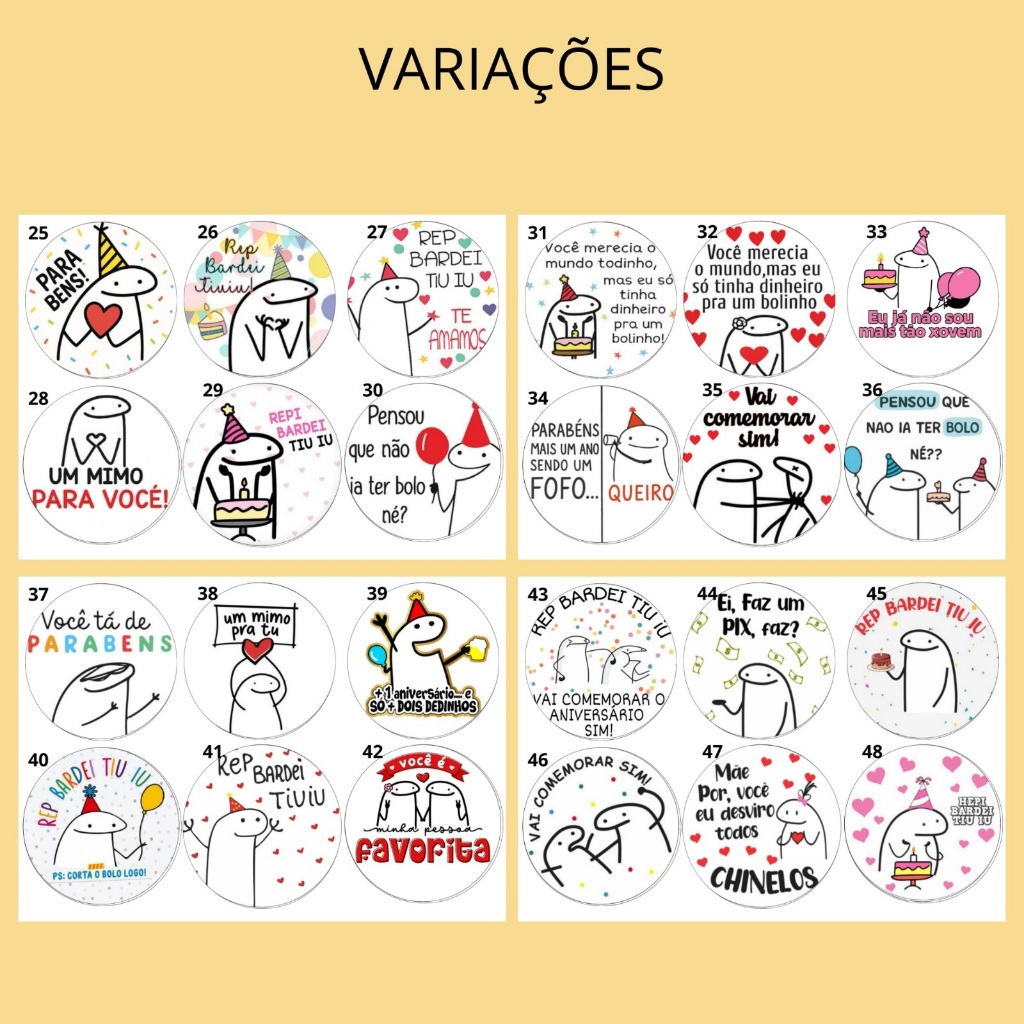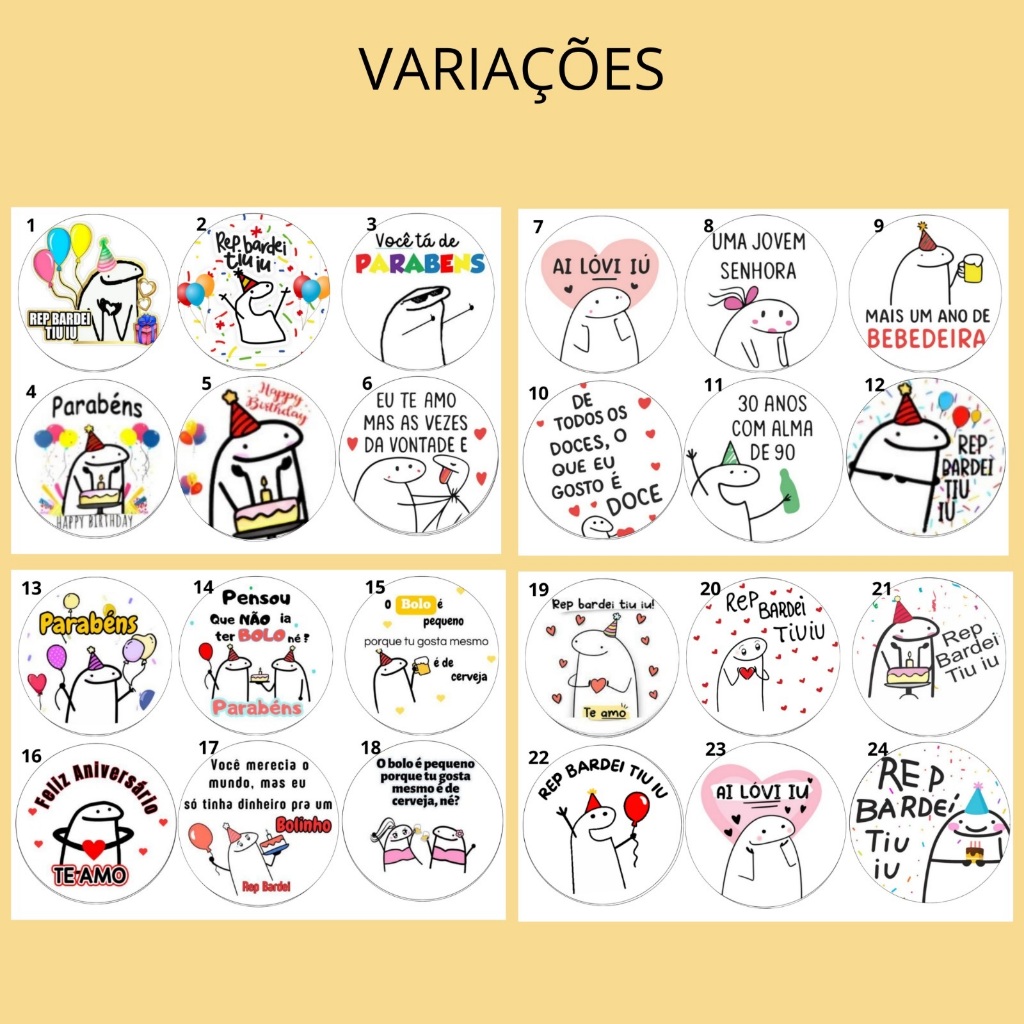 Kit C/12 Papel Arroz Bento Cake Flork Frases Aniversário 9cm - Bolo Marmita