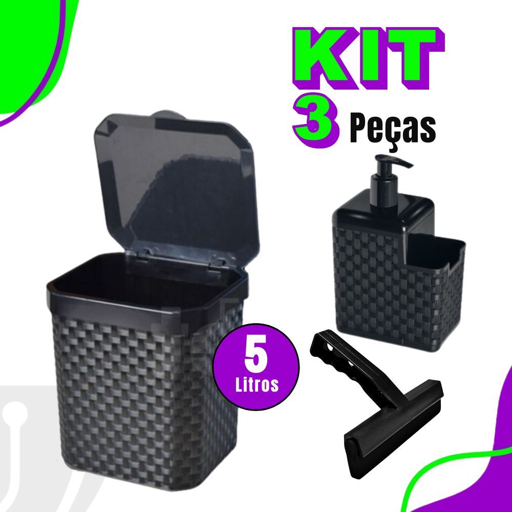 Kit Lixeira Pia 5 Litros + Porta Detergente Sabão + Rodinho de Pia Kit Cozinha 2/3 Peças