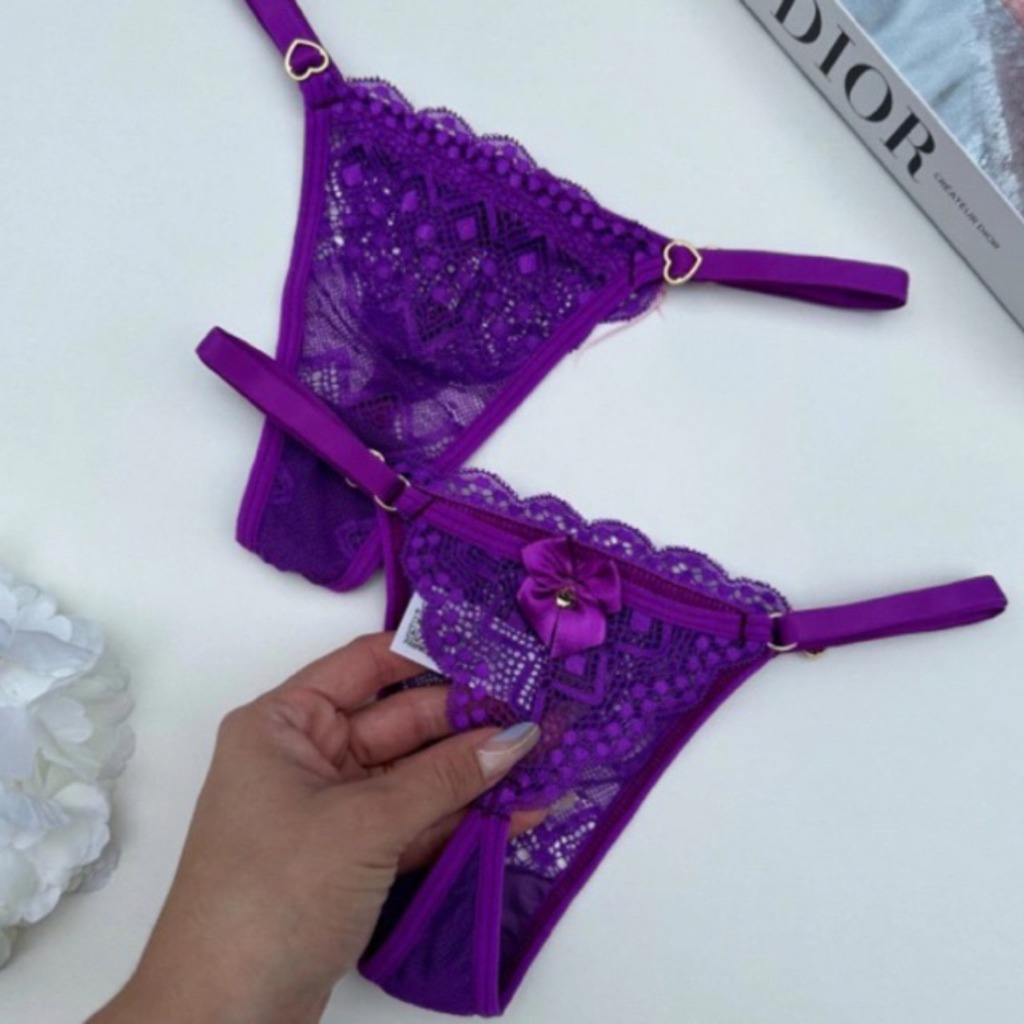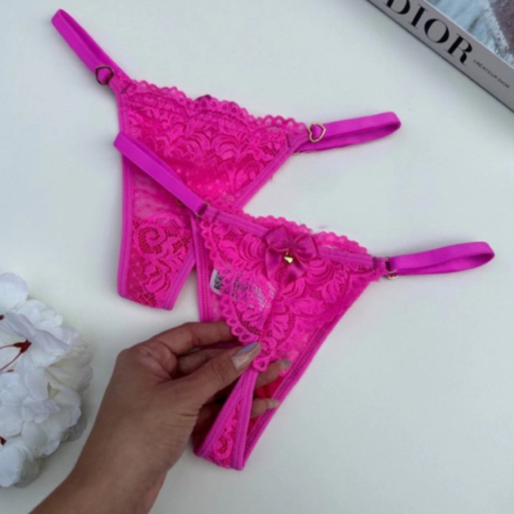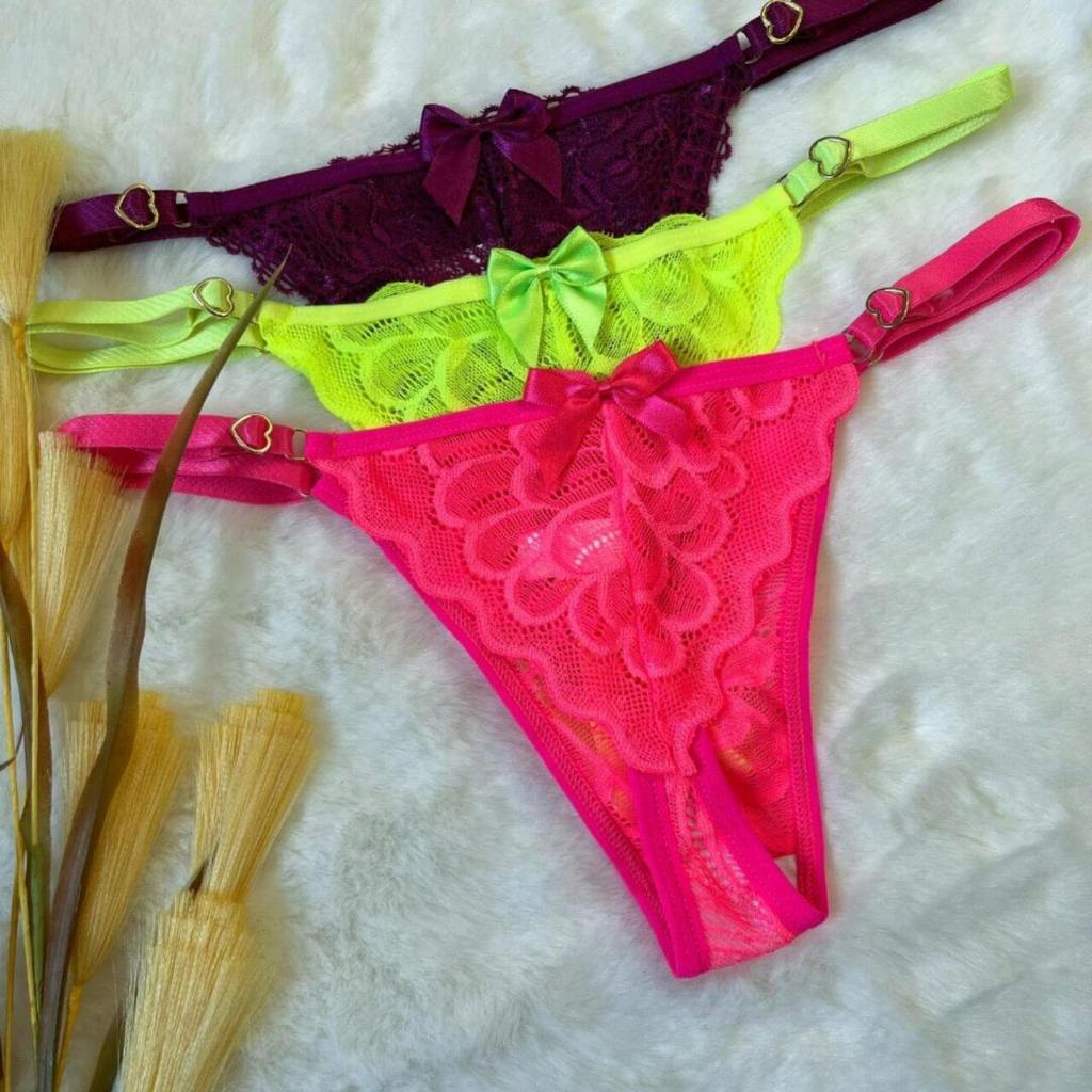 Kit 5 Tangas Femininas Sensual em Renda com Regulagem Coração Calcinha Sexy