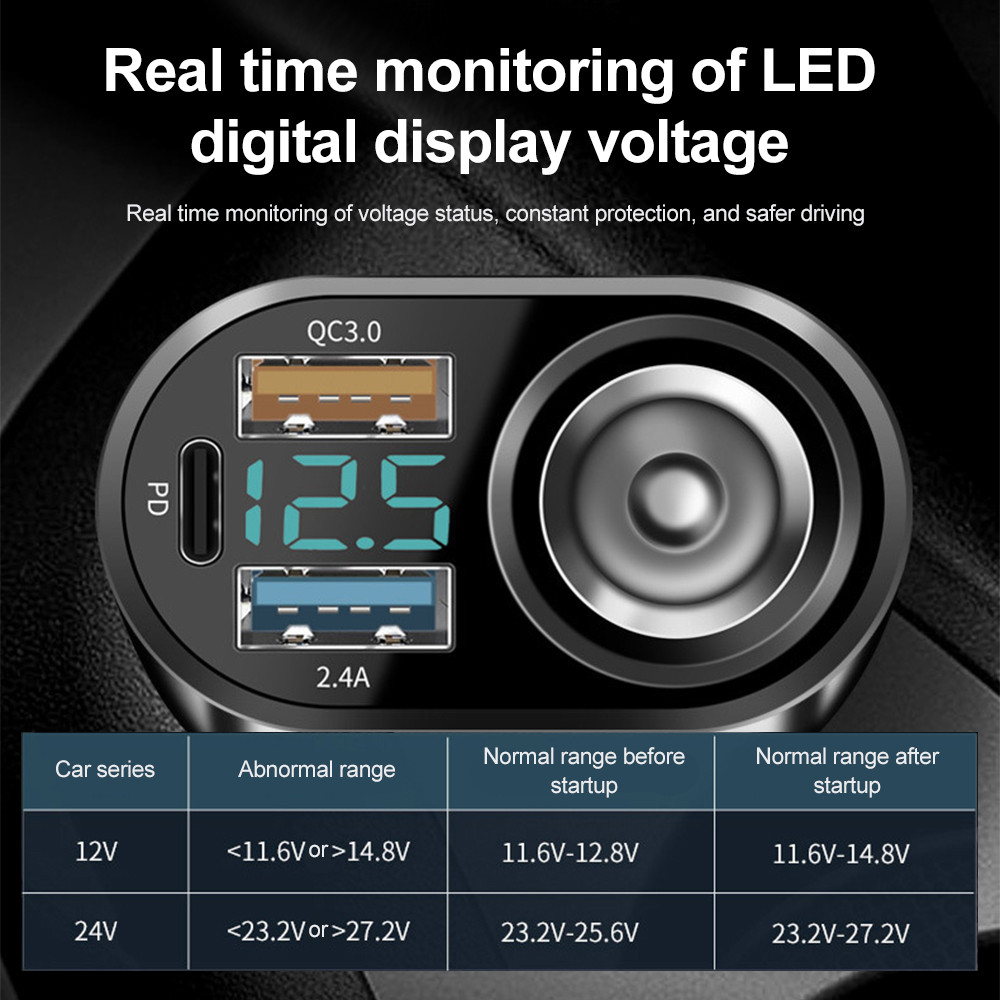 666w QC3.0 PD Adaptador De Isqueiro Para Carro USB Carregador De Telefone De Carga Rápida 12V-24V Universal iPhone Samsung Xiaomi