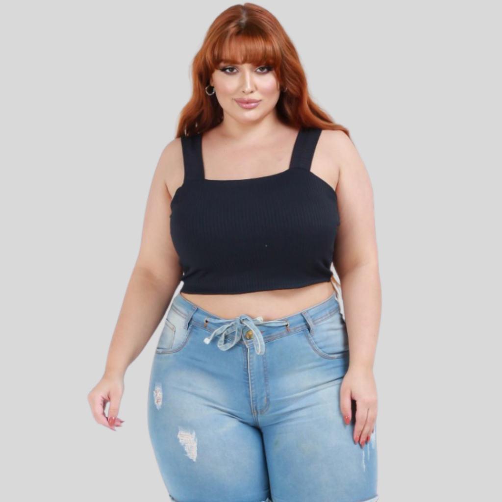 Cropped Clássico Plus Size Sem Estampa Conforto e Estilo com Ribana Gold G2-G4