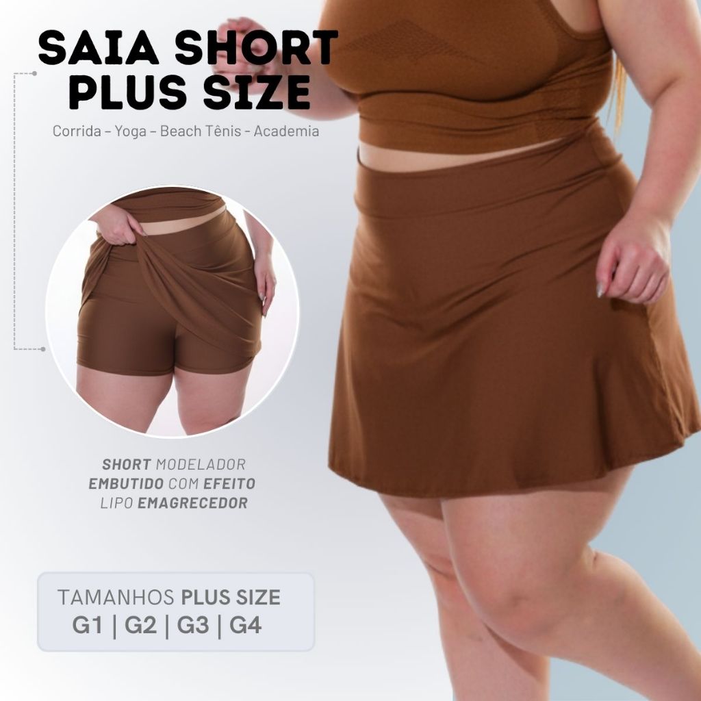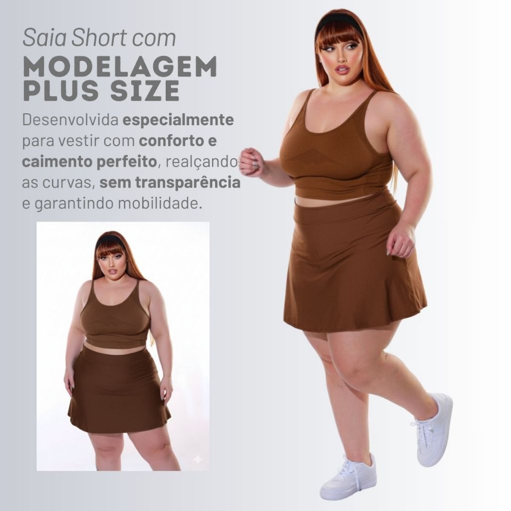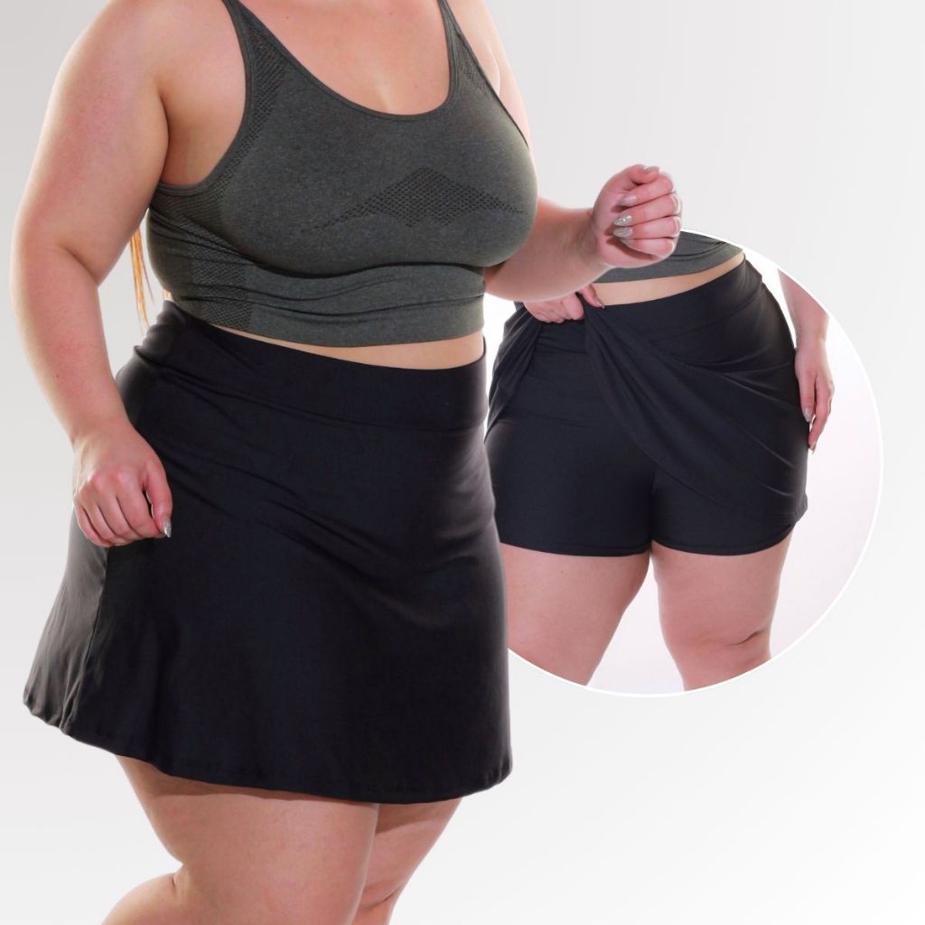 Kit 2 Short Saia Plus Size Academia Embutido Short Leve 2 Formas de Usar Treino Fitness