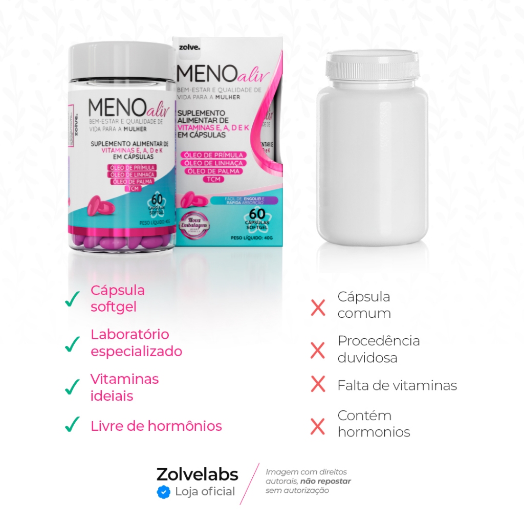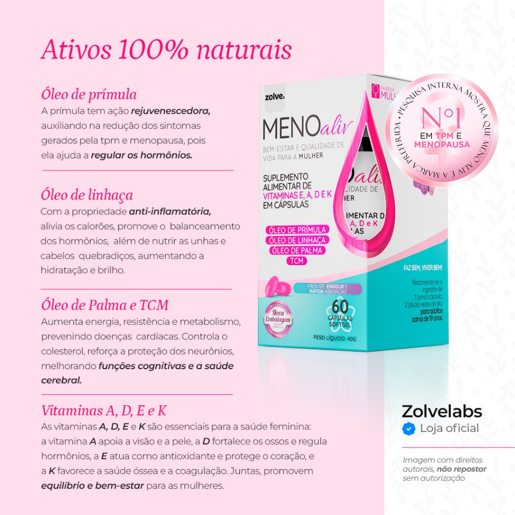 2pt Meno Aliv - Óleo Prímula, Linhaça, Palma, Vitamina A D E K, Suporte Hormonal Alívio da Menopausa