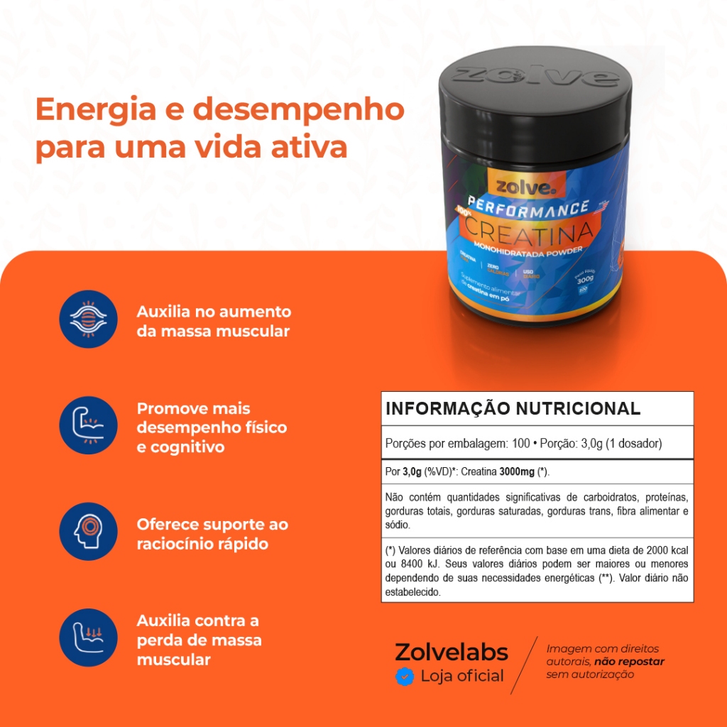Zolve Creatina Performance Monohidratada Pura Recuperação Pós‑Treino Diário Força e Resistência