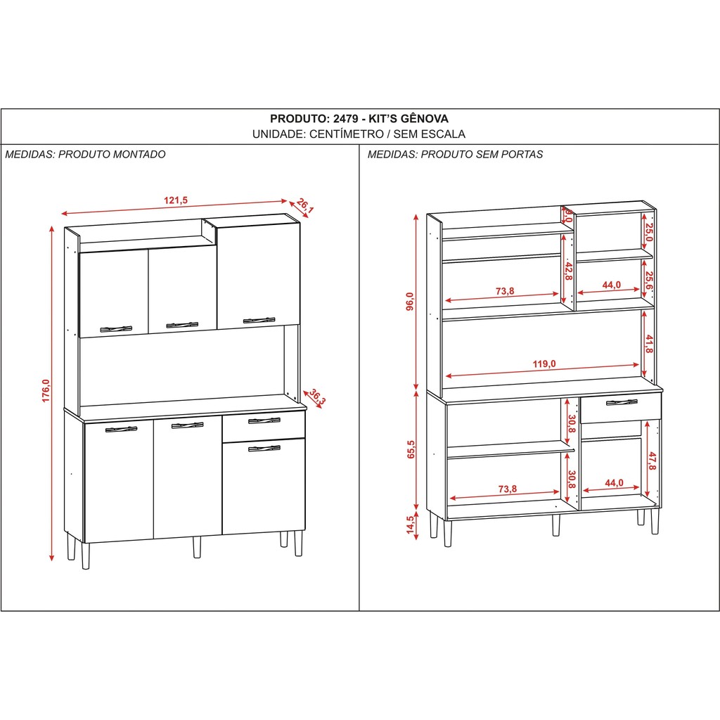 Armário de Cozinha Pequeno 6 Portas 1 Gaveta Genova Kits Paraná
