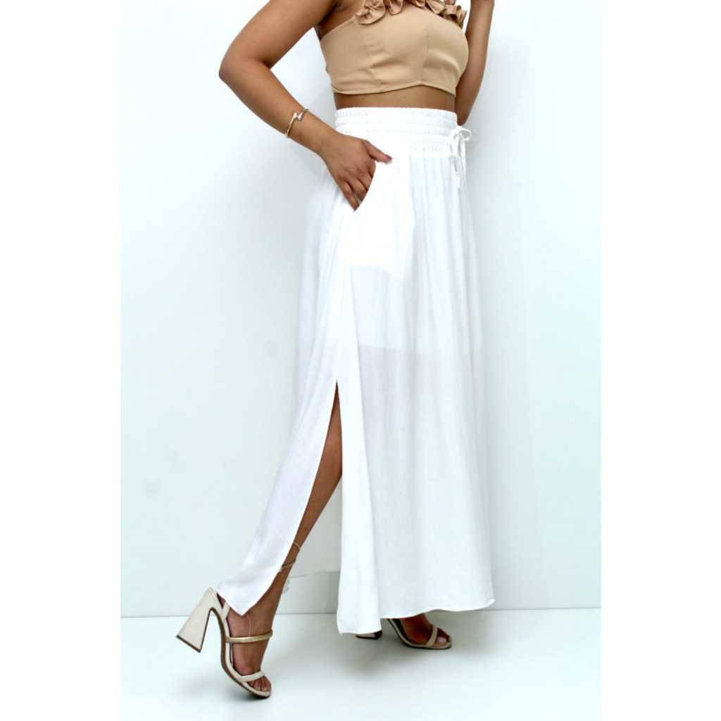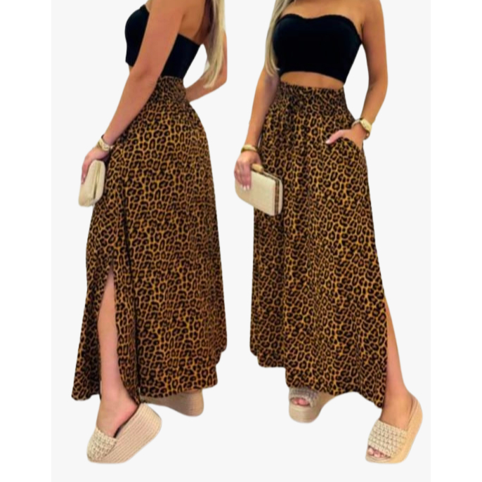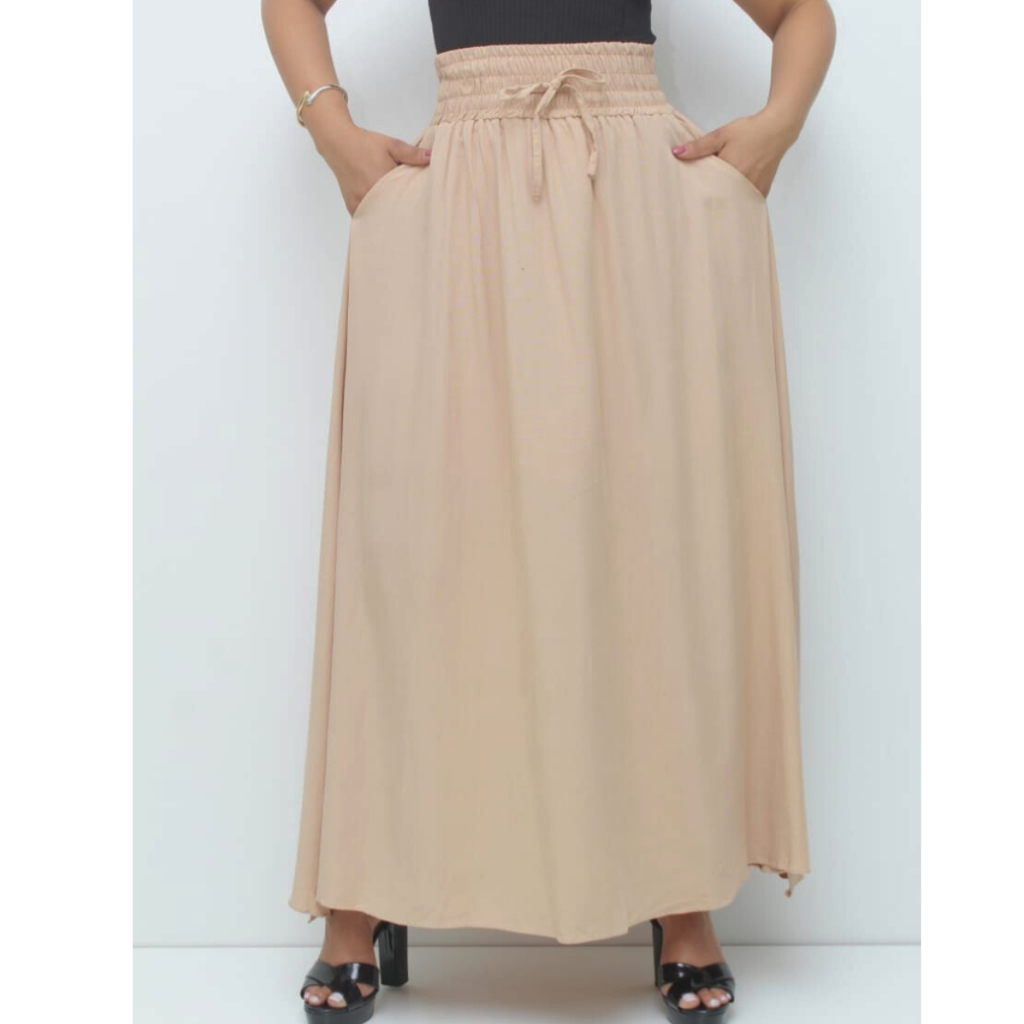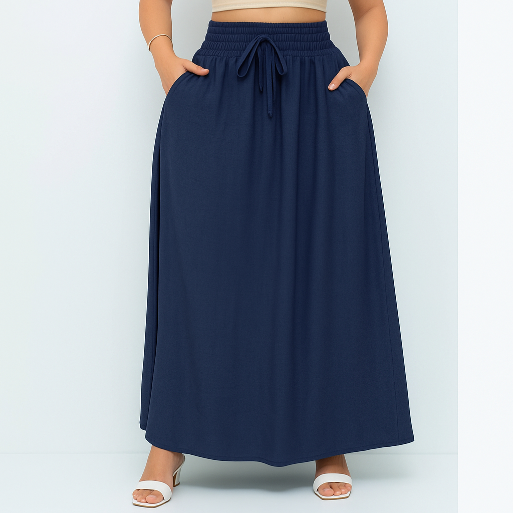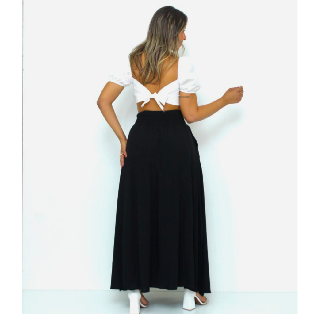 Saia Longa Feminina Forrada Cós Largo De Elástico Cintura Alta Com Bolso Viscolinho