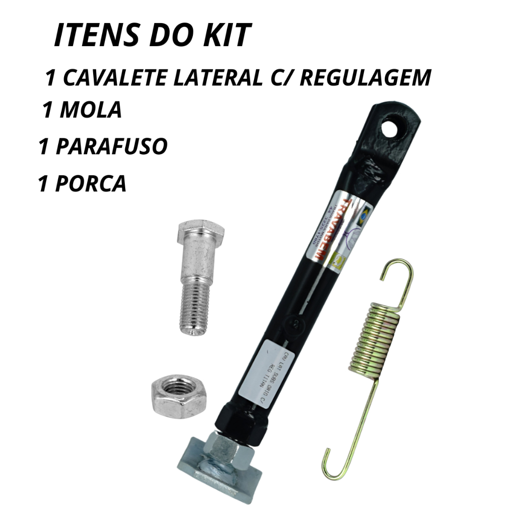 Kit Cavalete Lateral Regulável CG 125 150 160 Titan com Mola Parafuso Universal