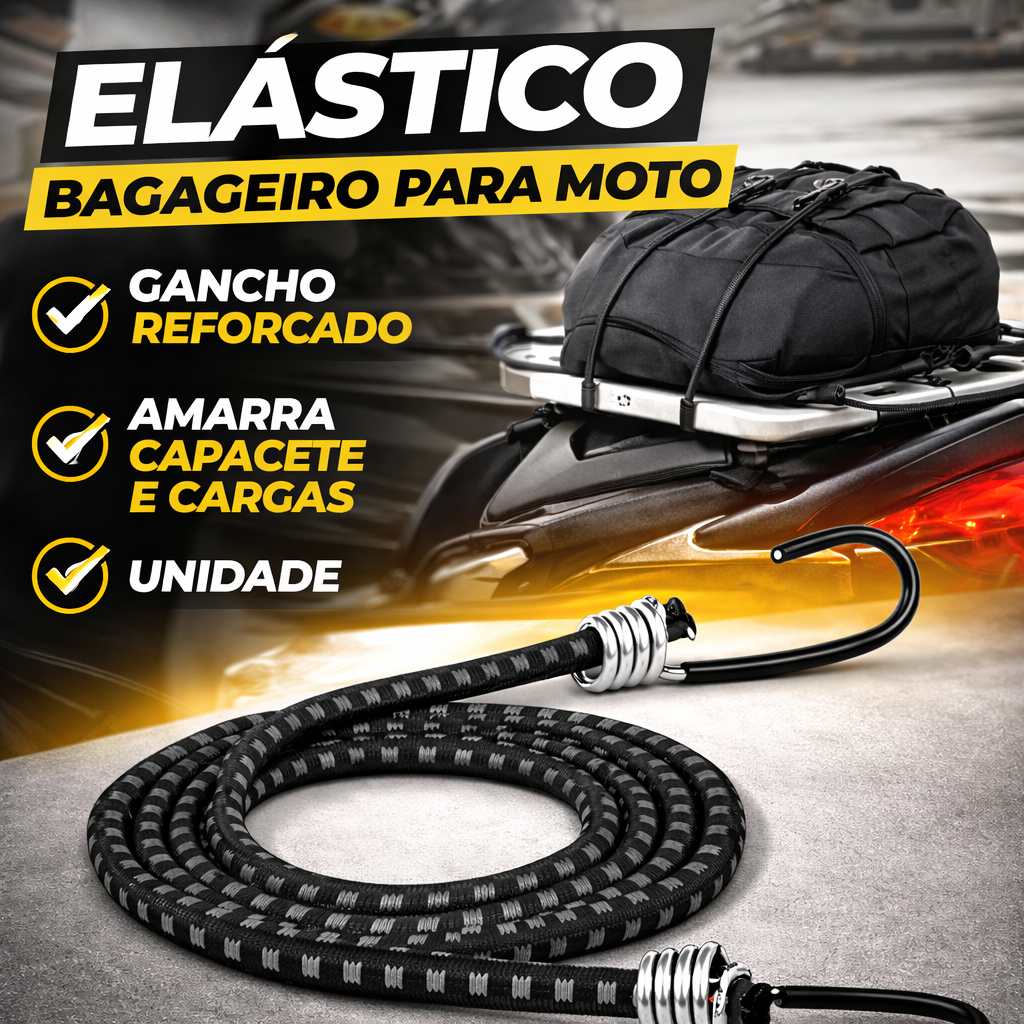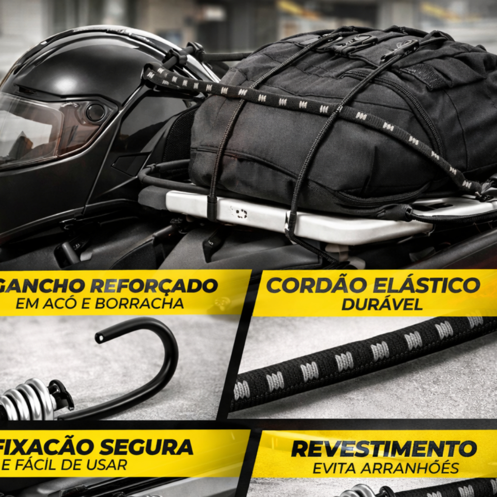 Elástico Bagageiro Moto Reforçado Gancho Aço com Borracha – Amarra Capacete Cargas