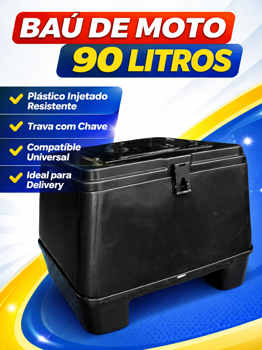 Baú Moto 90 Litros Nakabox MN3 Preto Omega para Motoboy Delivery Motofrete