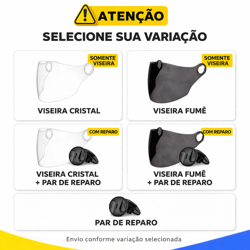 Kit/Un Viseira New Liberty 3 Cristal/Fumê ou Botão Reparo Capacete Aberto Pro Tork KIT SELECIONÁVEL