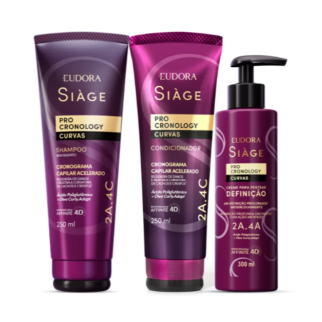 Eudora Kit Siàge Pro Cronology Curvas: Shampoo 250ml + Condicionador 250ml + Creme para Pentear Definição 300ml