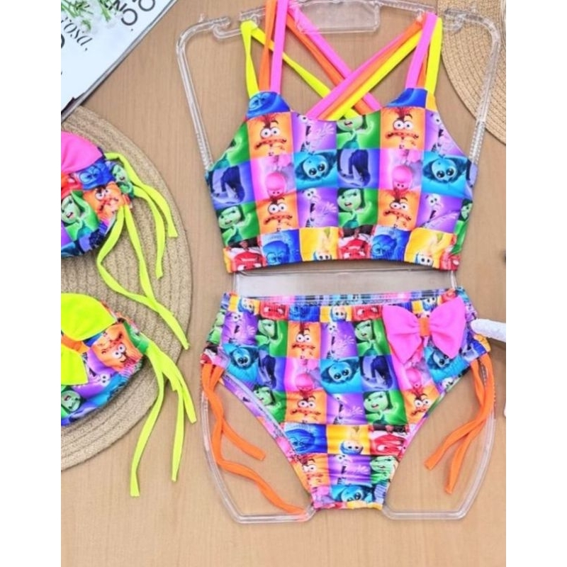 Biquíni infantil divertidamente moda praia infantil juvenil tendência verão personagens divertidamente blogueirinha