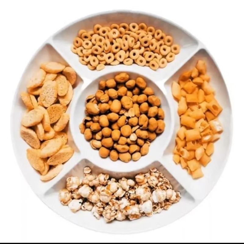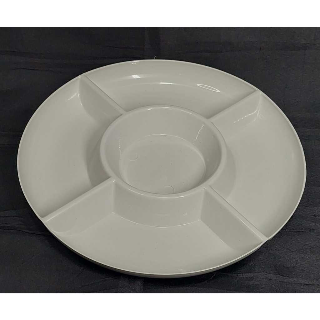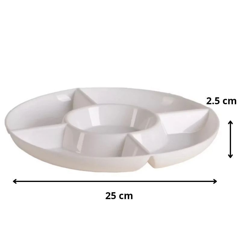 Kit Petisqueira Redonda com Divisórias + Ramekin para Molhos, Plástico, Petiscos, Buffet e Festa
