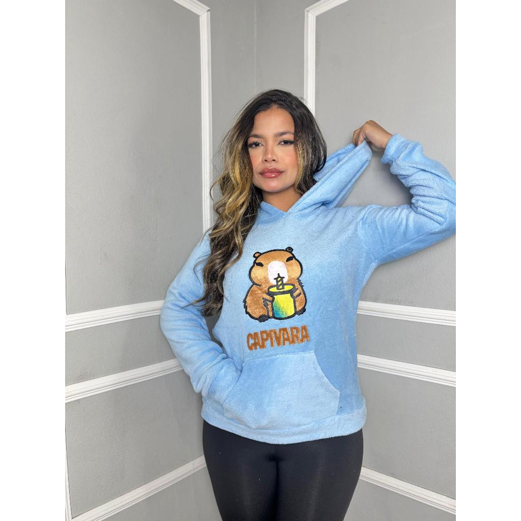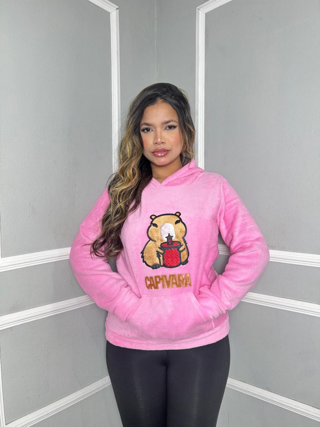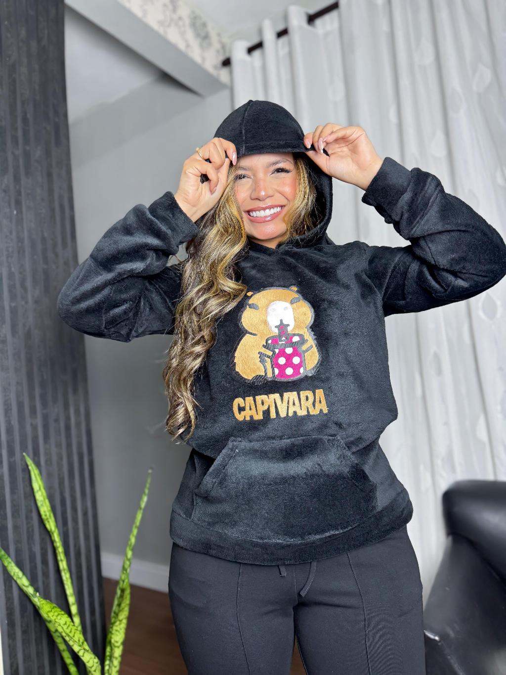 Blusa Moletom Feminina Capirava Pelucia com Capuz - Estampa Capivara - Super Confortável!