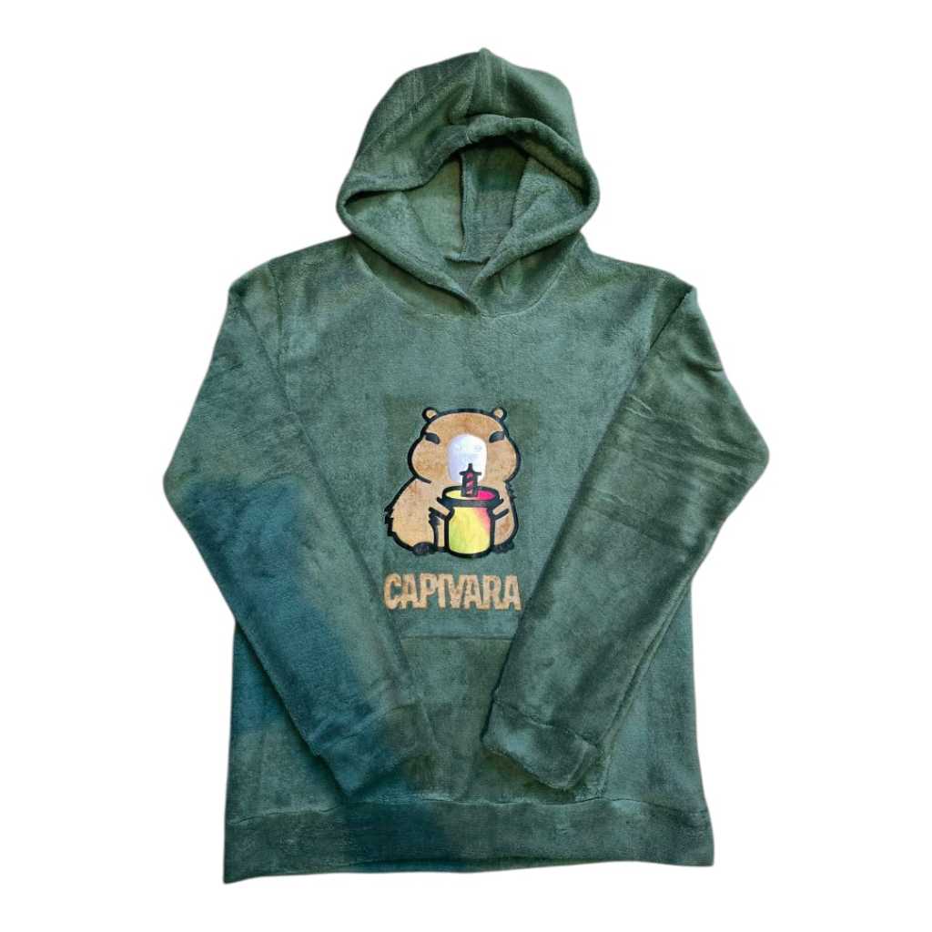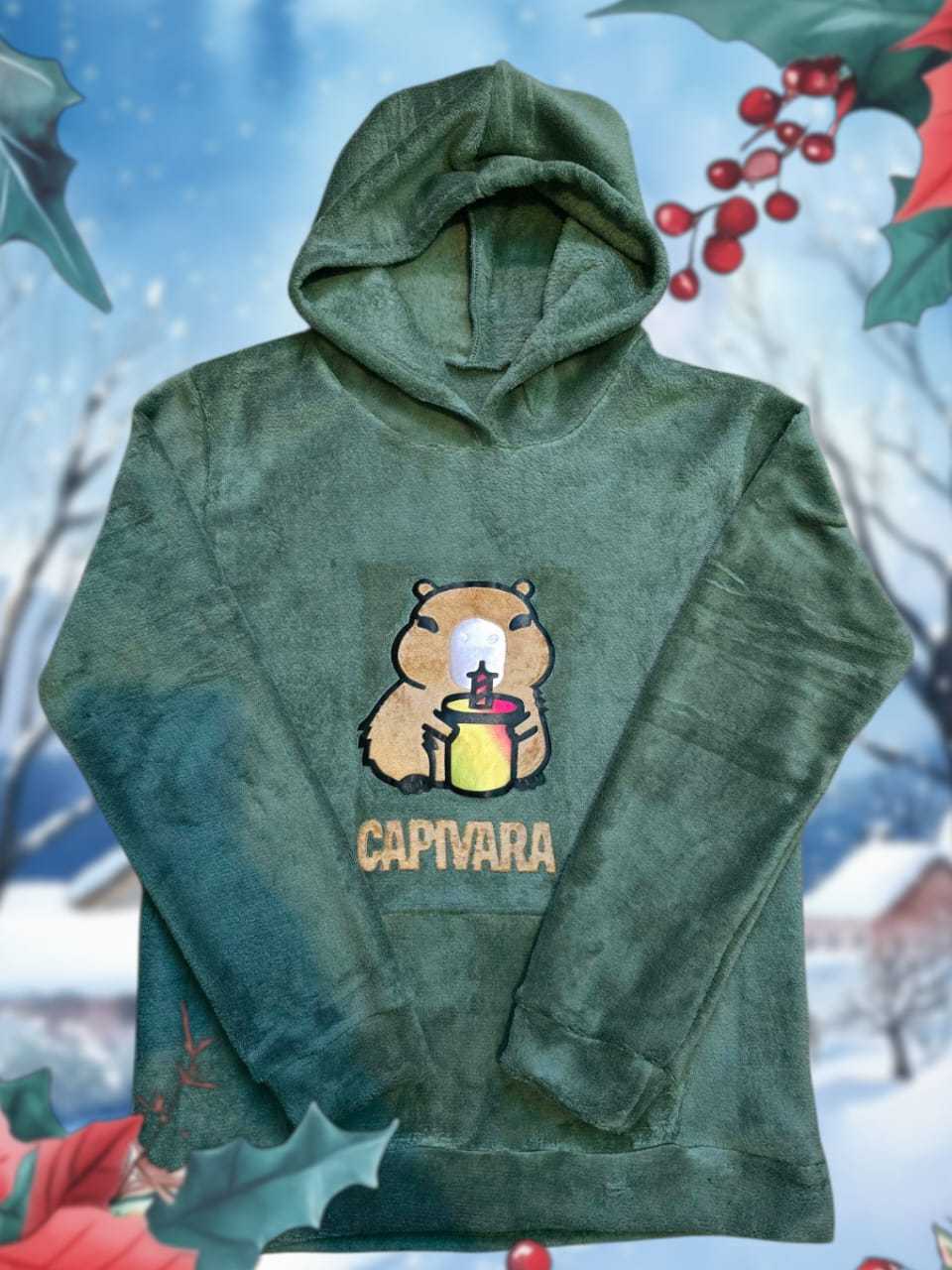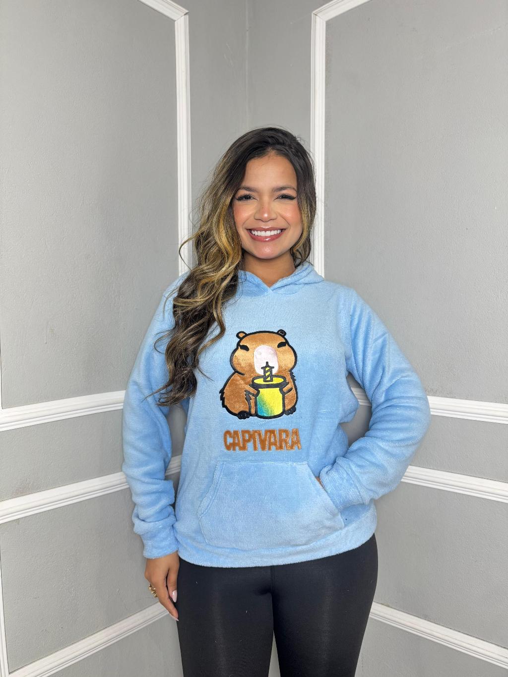 Blusa Moletom Feminina Capirava Pelucia com Capuz - Estampa Capivara - Super Confortável!