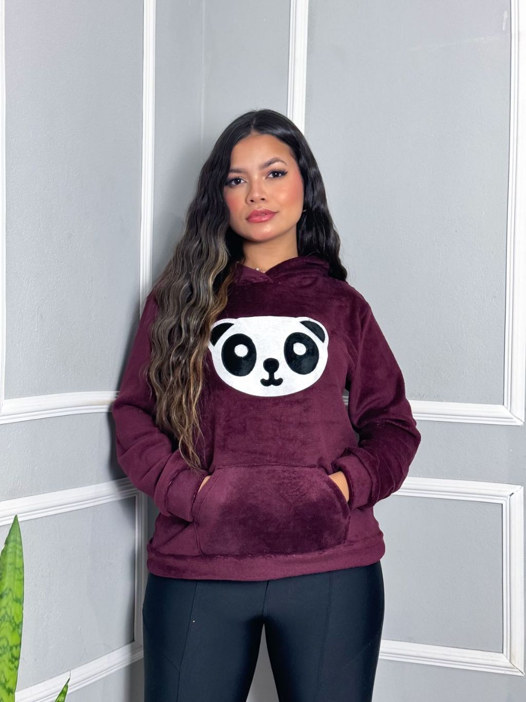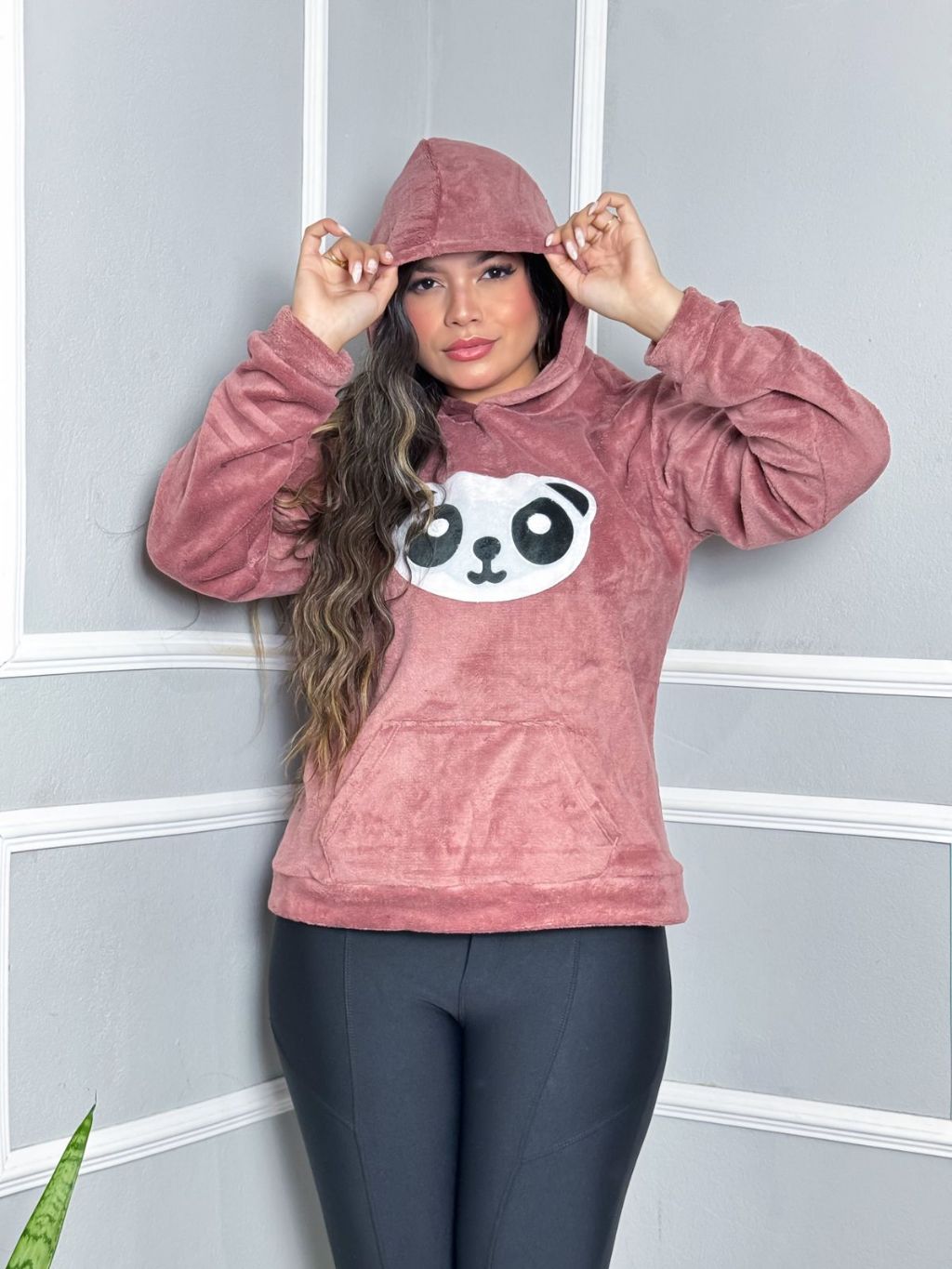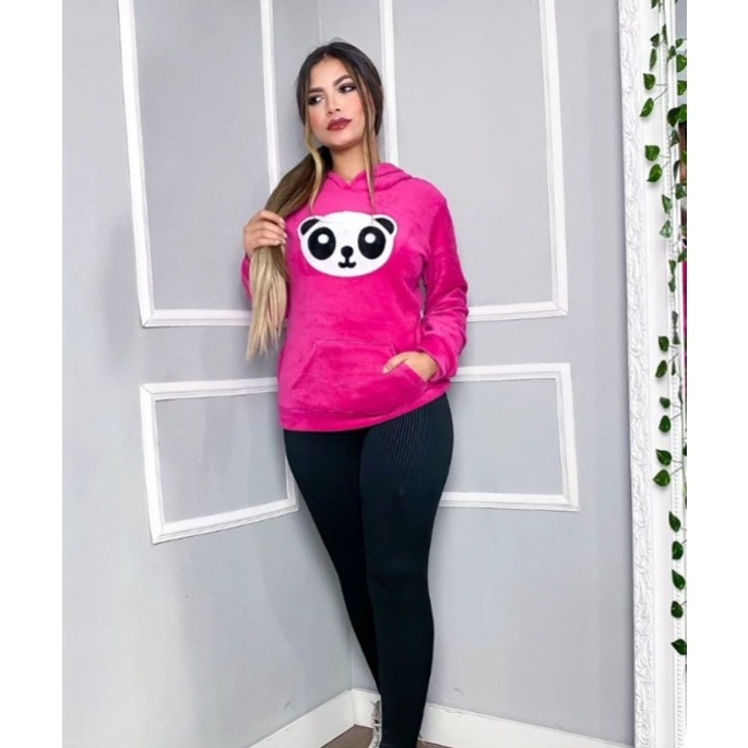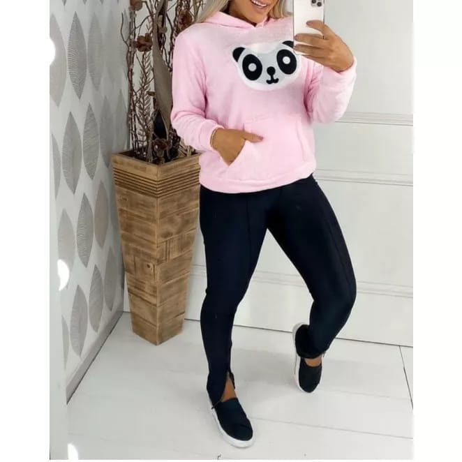 Blusa Moletom Feminina Pelucia com Capuz - Estampa de Panda - Super Confortável!
