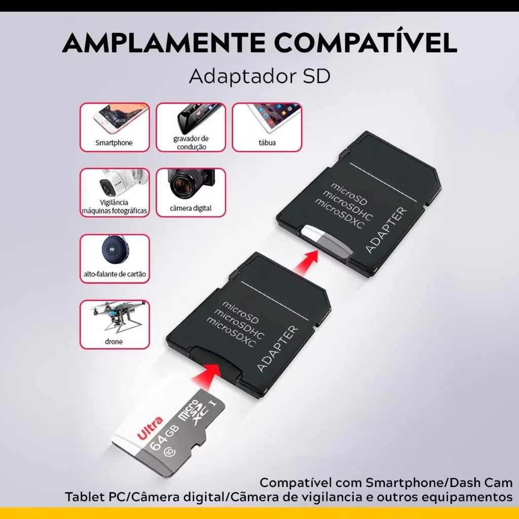 Cartão De Memória MicroSd 1TB/512gb/256gb/128gb Classe A10 Ultra Câmeras de Segurança Drone