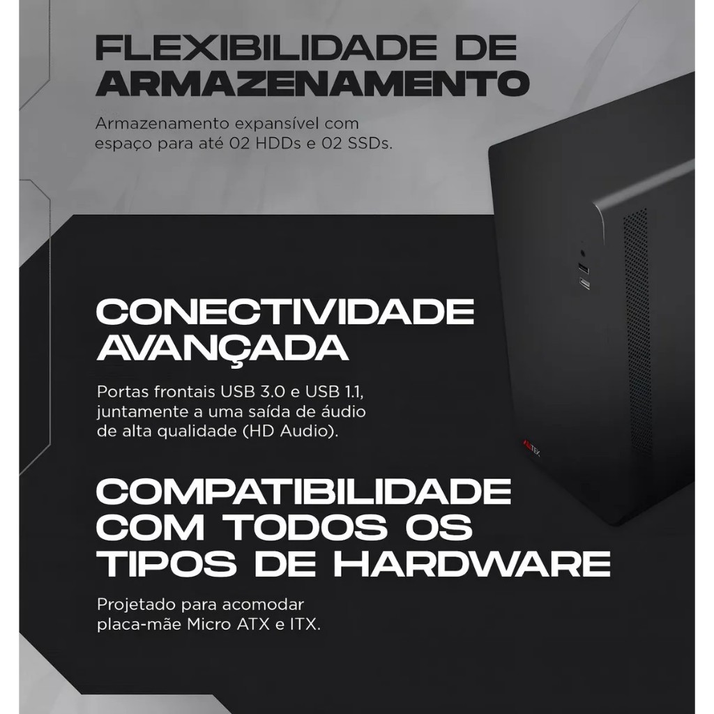 Gabinete Atx Cpu Alltek Atk20 S/ Fonte S/ Fan Porta Usb 3.0 Preta Para Escritório