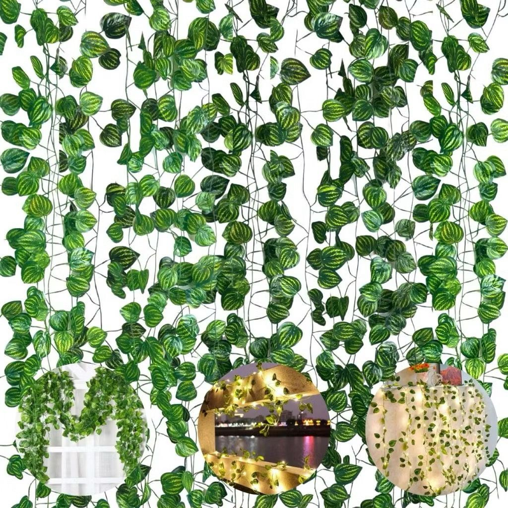 30 Metros Hera Verde Planta Artificial Trepadeira Ramas Folhagem Pendente