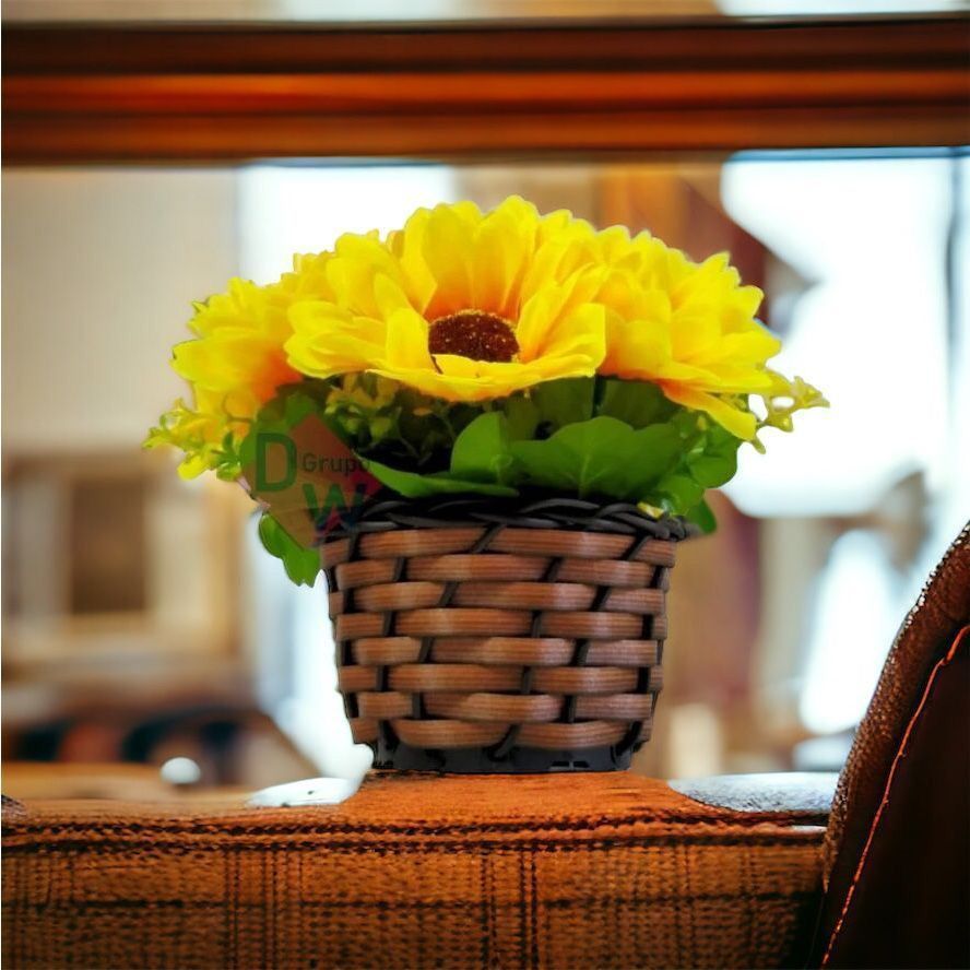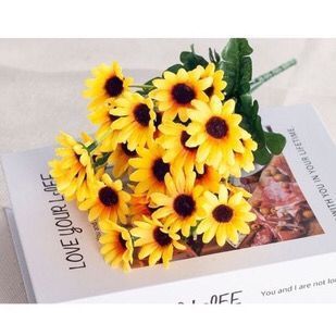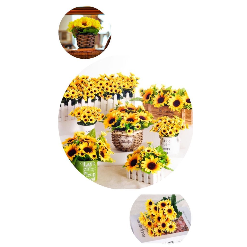 Buquê Flores Girassóis, Flores Artificiais Grande Folhagem Decoração