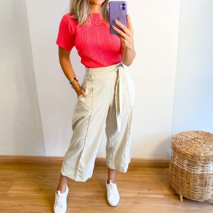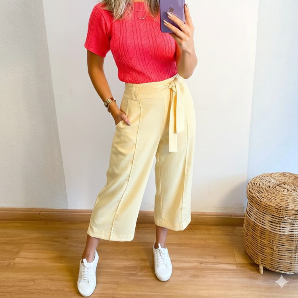 Calça Pantacurt Femenino Forrado , Linho com Cinto tamanhos M -42 G- 44 GG -46