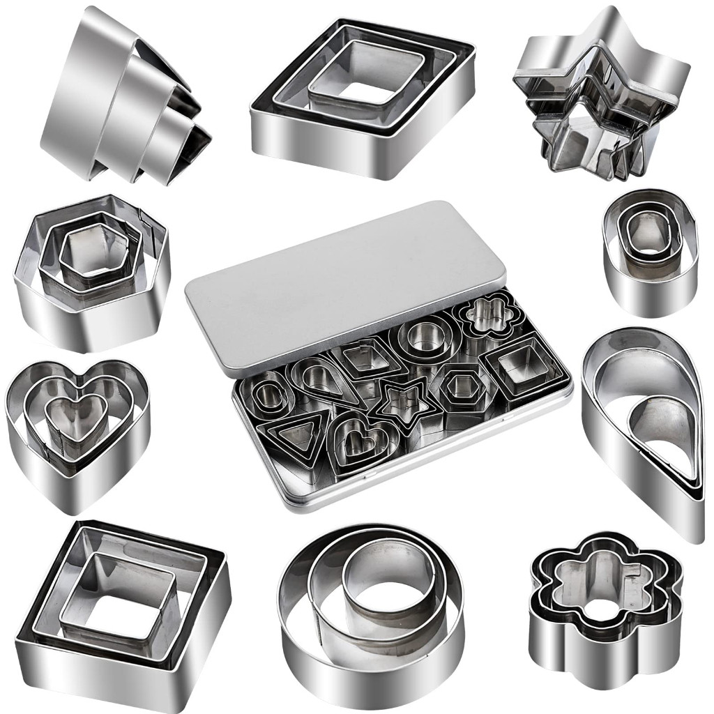 Conjunto de 30 cortadores de biscoitos de aço inoxidável formasvariadas e anéis de mousse
