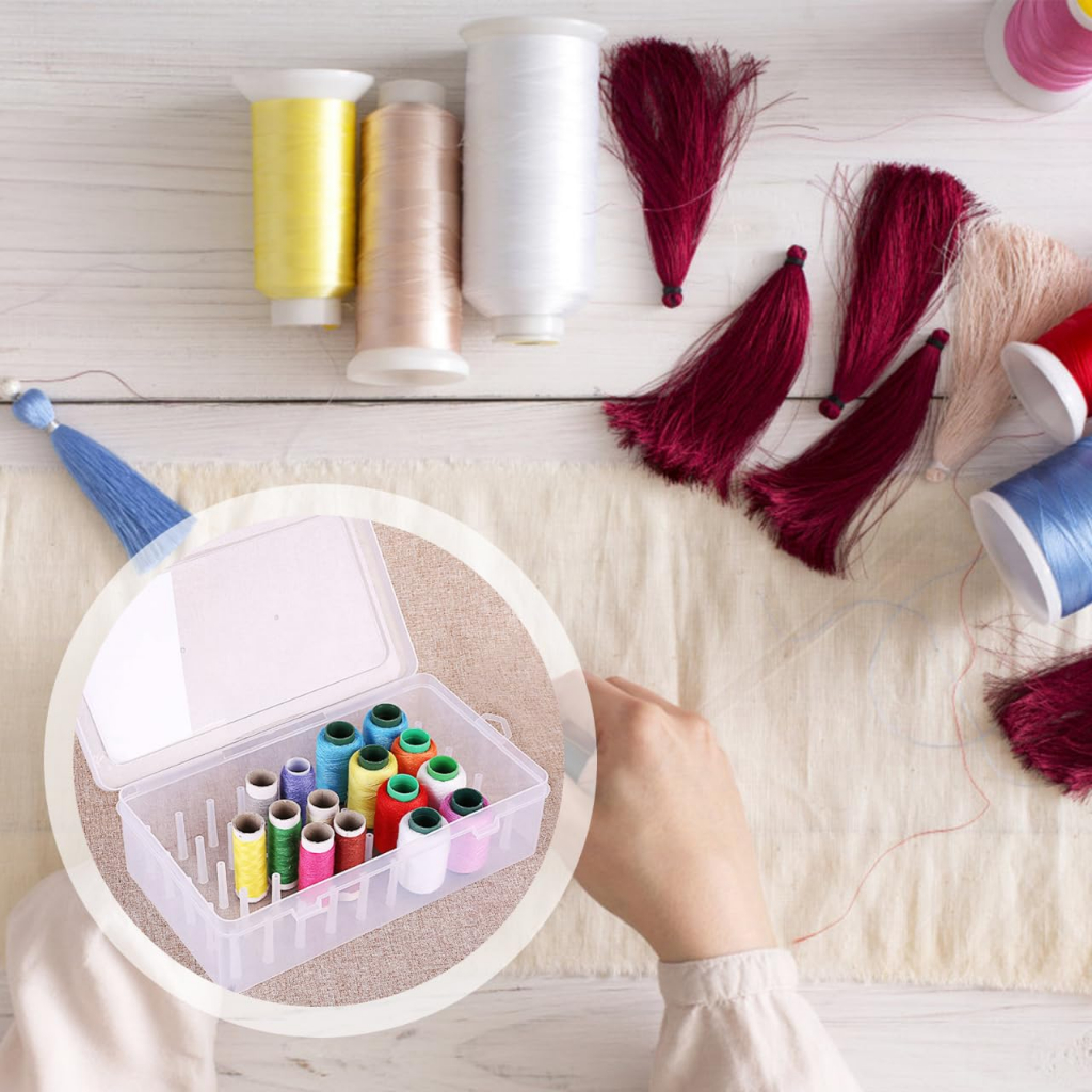 Caixa De Carretel De Linha De Plástico-Kit De Costura Doméstica De 42 Carretéis , Organizador De Mesa Transparente Multi
