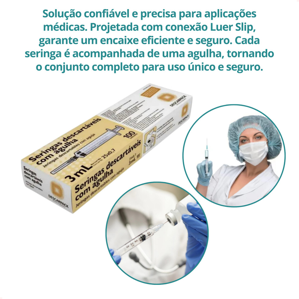 Seringa 3ml 25X0,7cm 100un Com Agulha Luer Slip - Envio Imediato