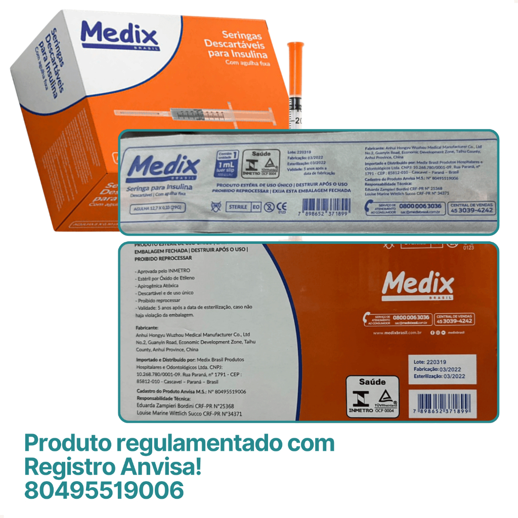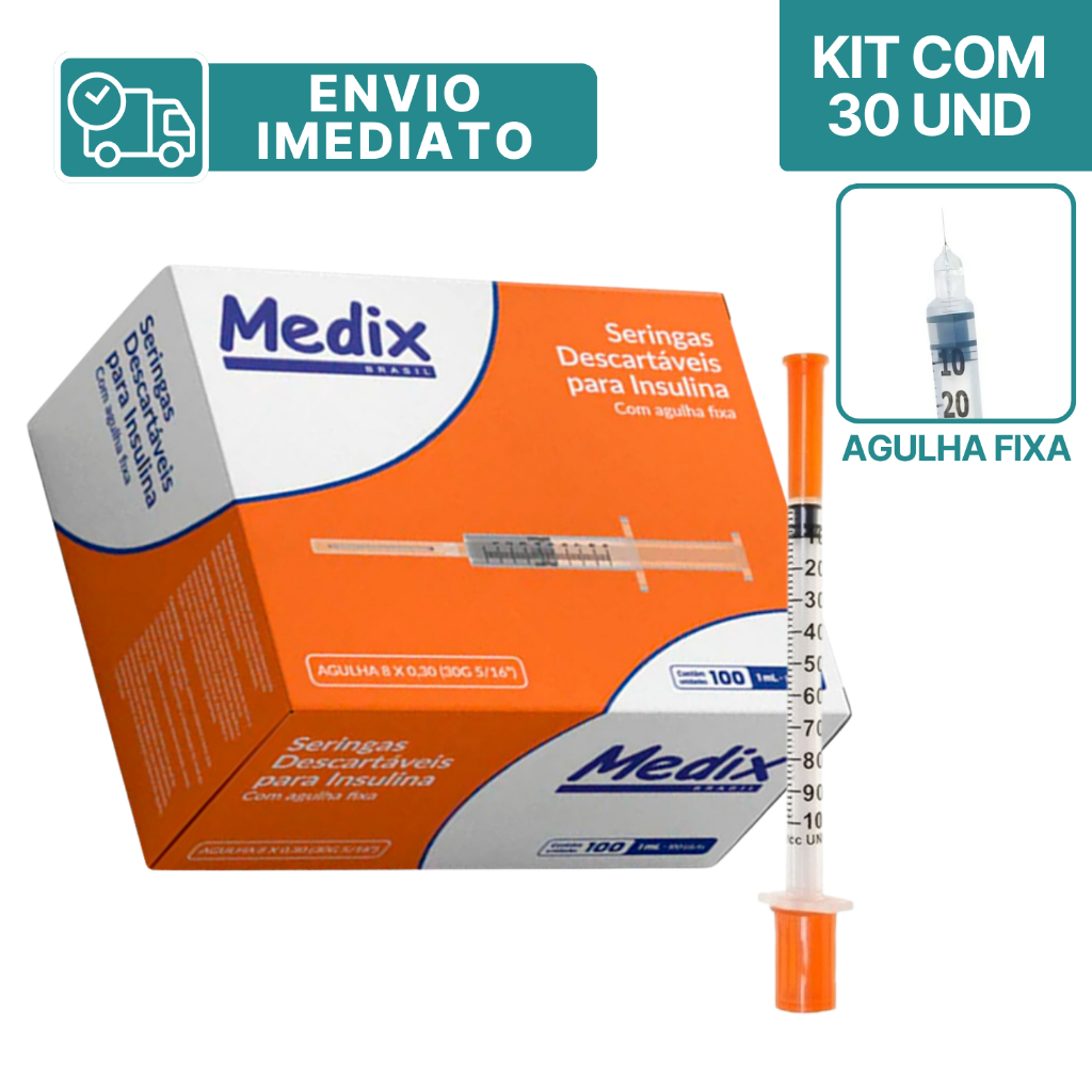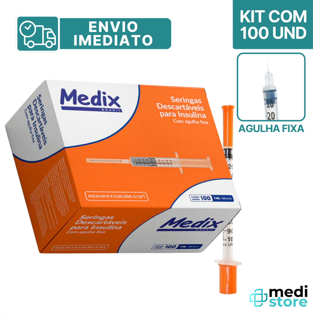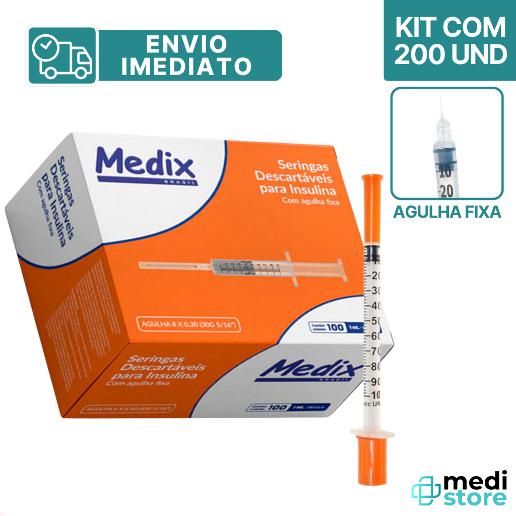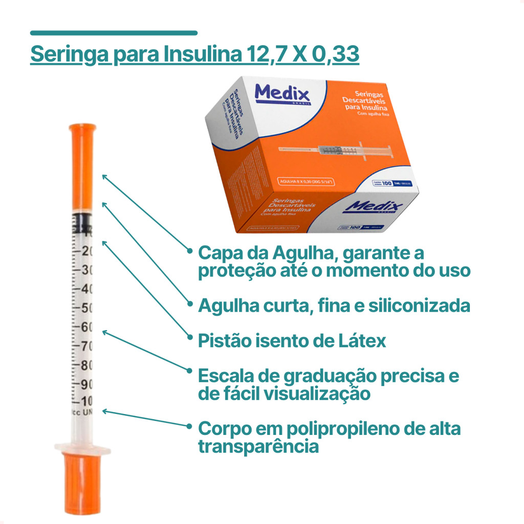 Seringa 1mL 12,7 X 0,33mm com Agulha Fixa Insulina Botox - Envio Imediato