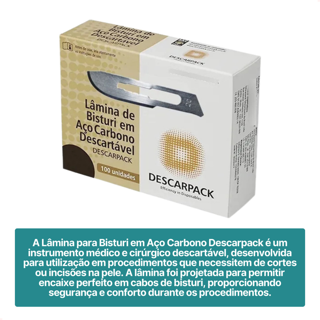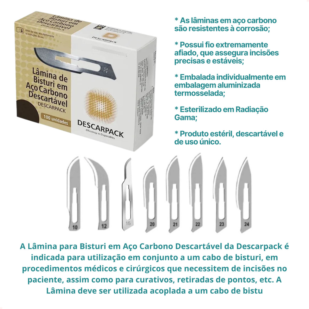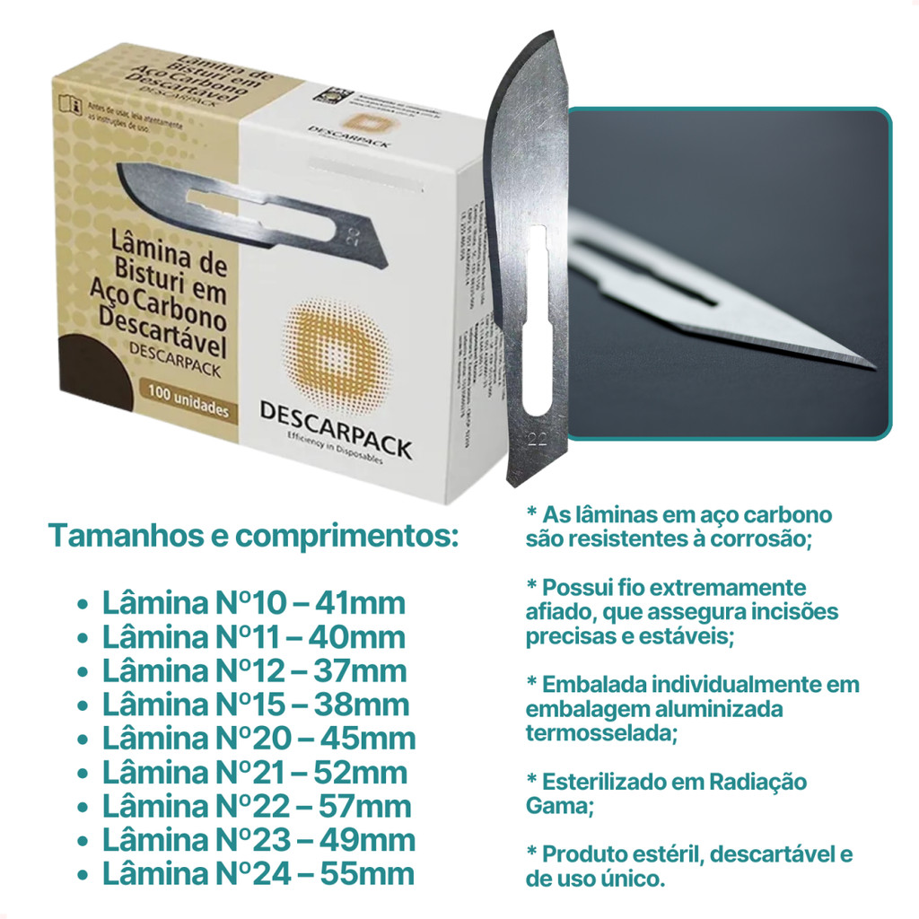 Lâmina de Bisturi Aço Carbono ou Inox Sem Cabo Descarpack Vários Tamanhos No - Envio Imediato