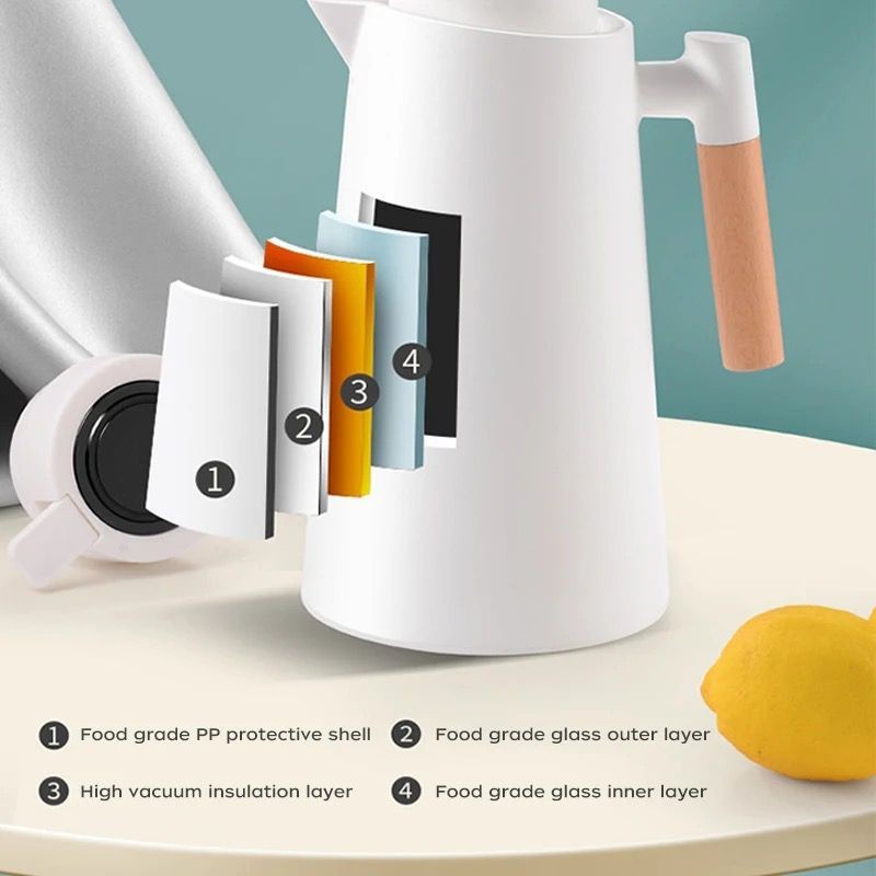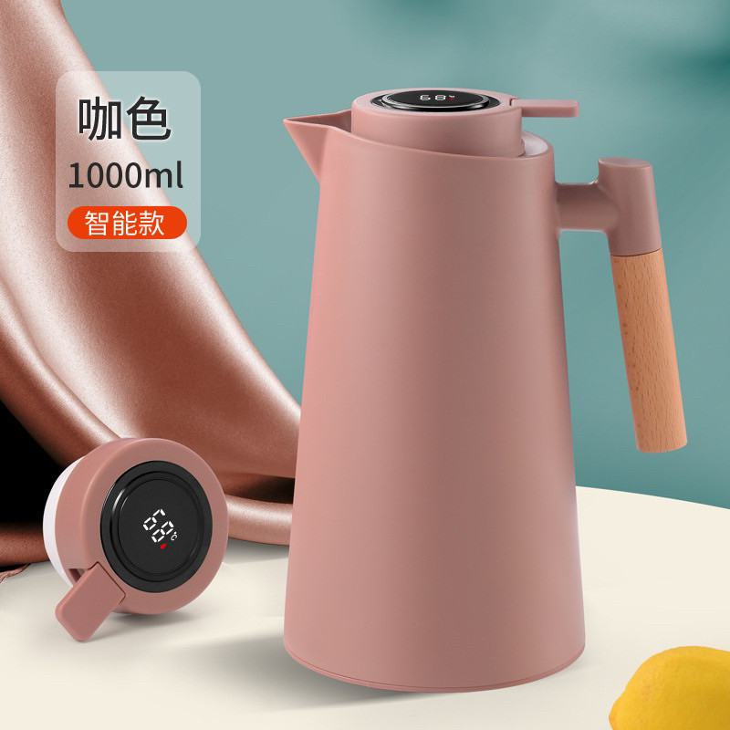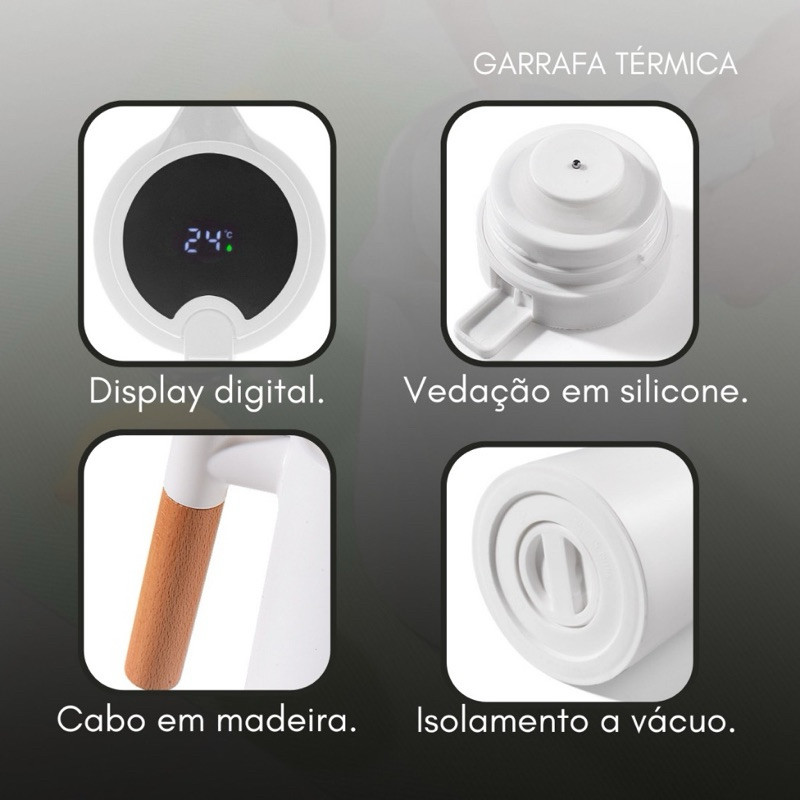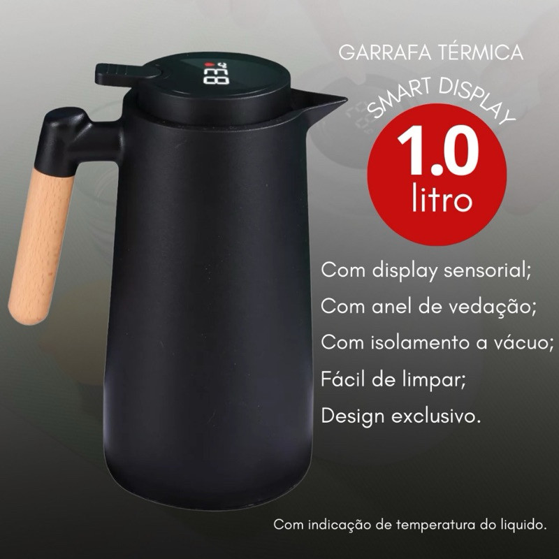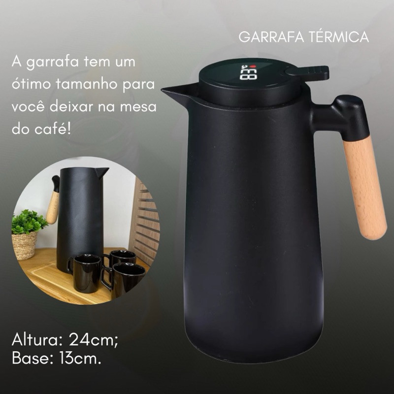 Garrafa Térmica Termometro Digital Café Chá Nórdica Com Cabo Madeira 1L(MDL03)