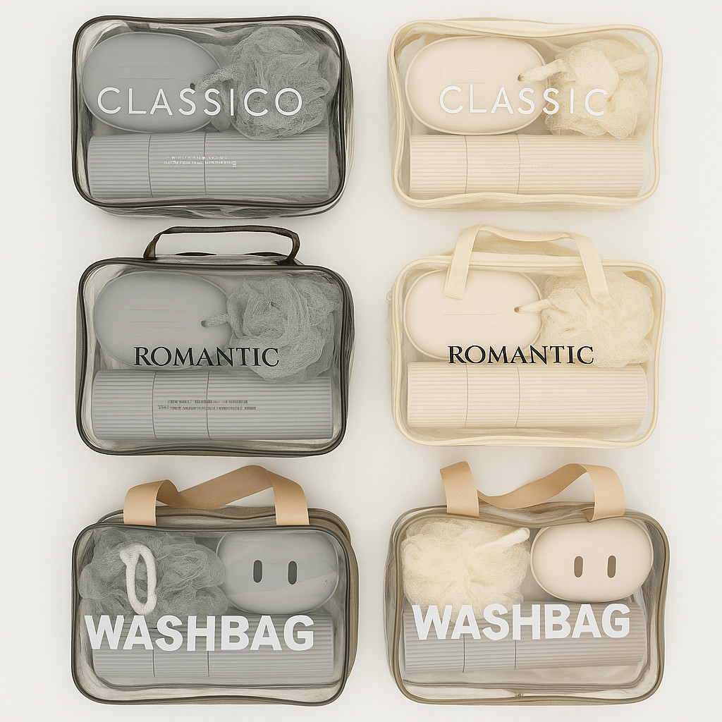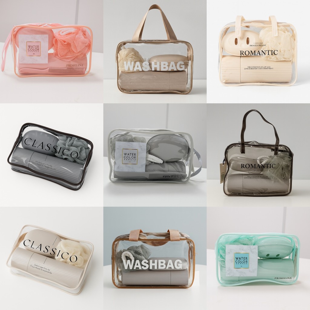 Kit Viagem 5 peças com bolsa porta escova pente saboneteira e ducha acessórios para higiene portátil