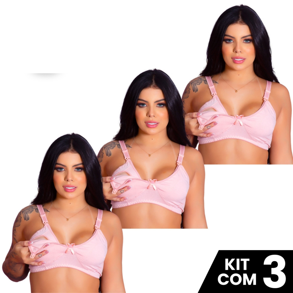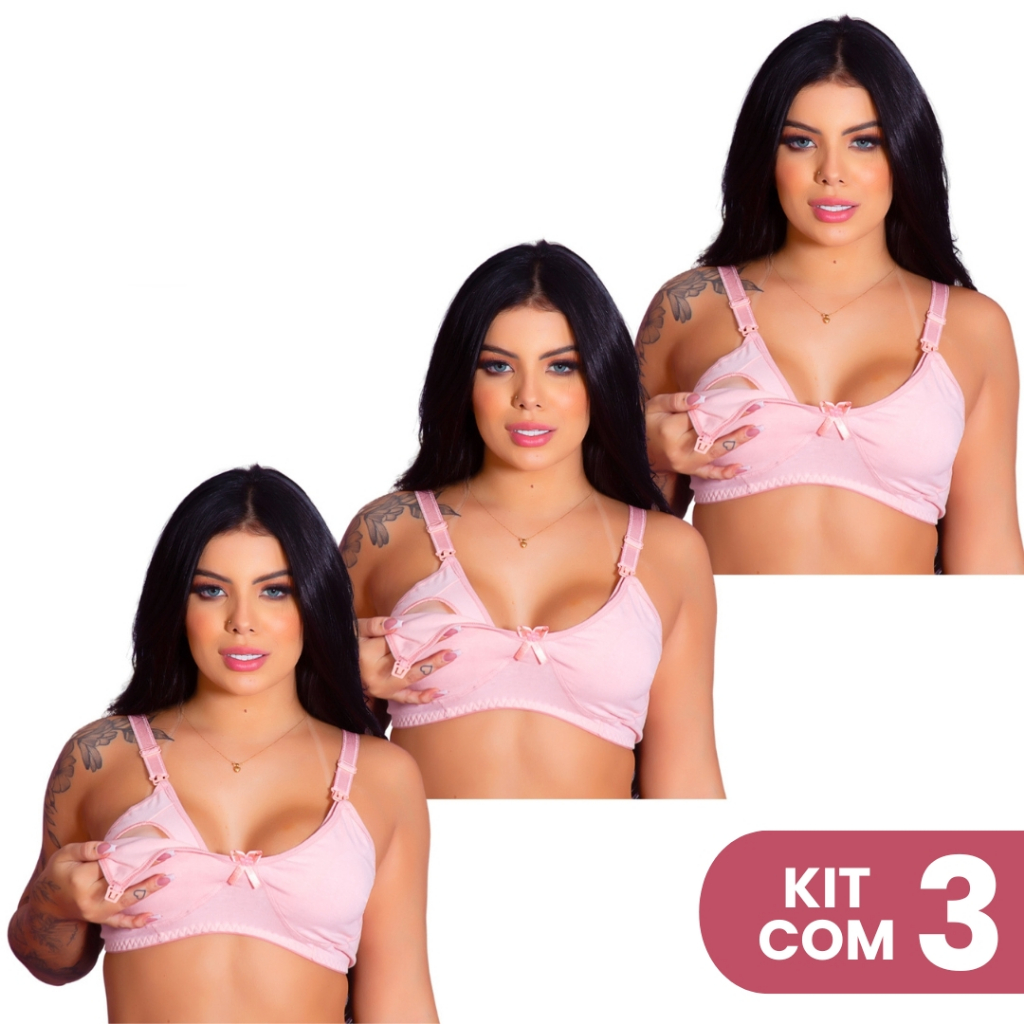 Kit 3 Sutiãs de Amamentação Cotton Gestante Confortável Prático Fecho Fácil Maternidade Pós Parto