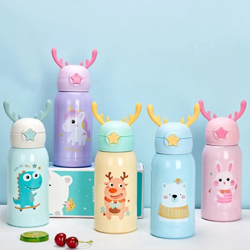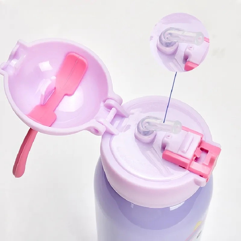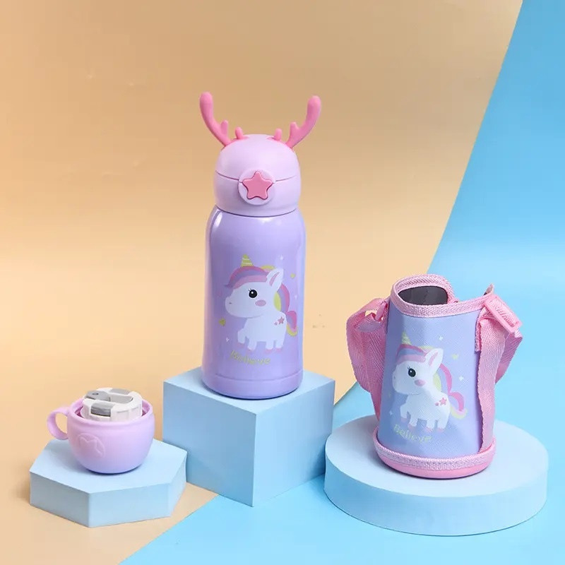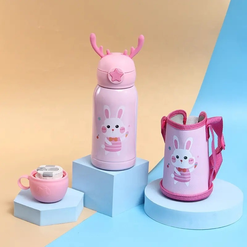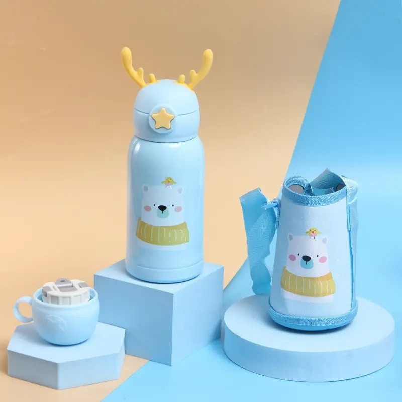 Garrafa Térmica Infantil de 500 ml Aço Inox 304 Com Alça Bolsa De Armazenamento, Canudo e Caneca