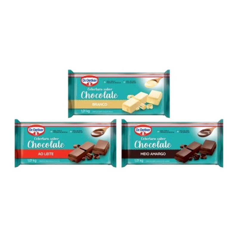 Cobertura em Barra Dr. Oetker 1,01kg – Branco, Ao Leite ou Meio Amargo | Kit c/1, 2 ou 3 Unidades