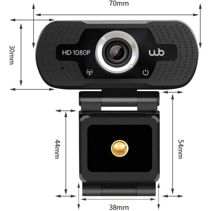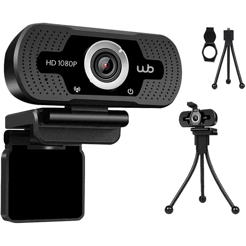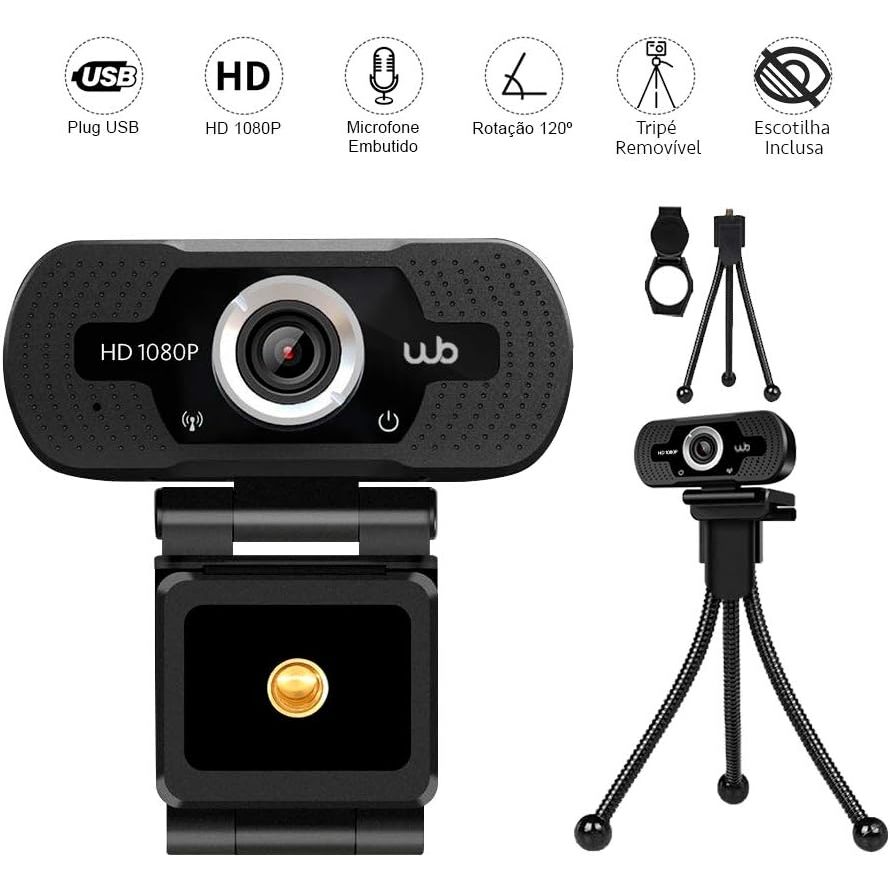 Webcam USB Full HD 1080P WB com Microfone Estéreo Com Cancelamento de Ruído Amplo Ângulo 110° e Tripé