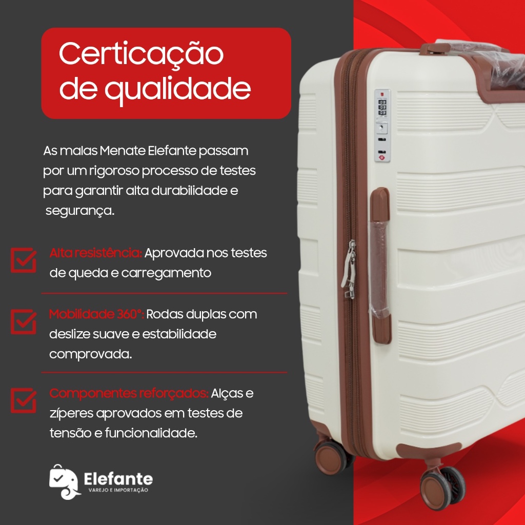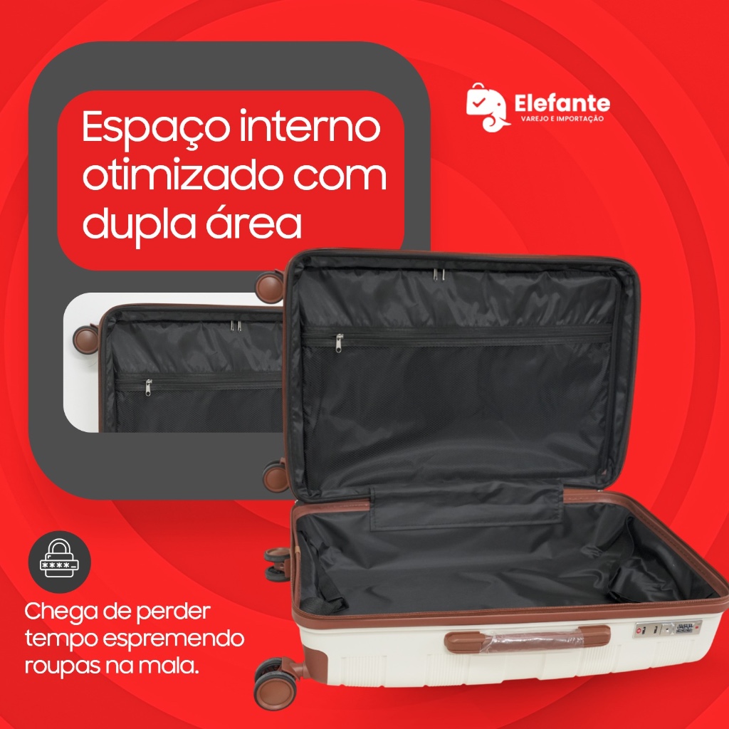 Mala De Bordo Viagem Menat 23Kg Branca Polipropileno Inquebrável 4 Rodas Com Cadeado TSA