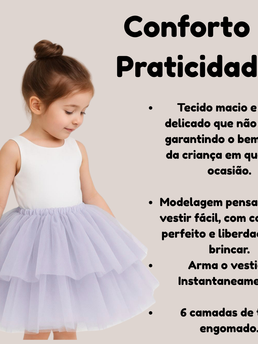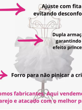 Saiote Armação Infantil Anágua Para Armação Vestido De Festa Luxo PP ao G - PB