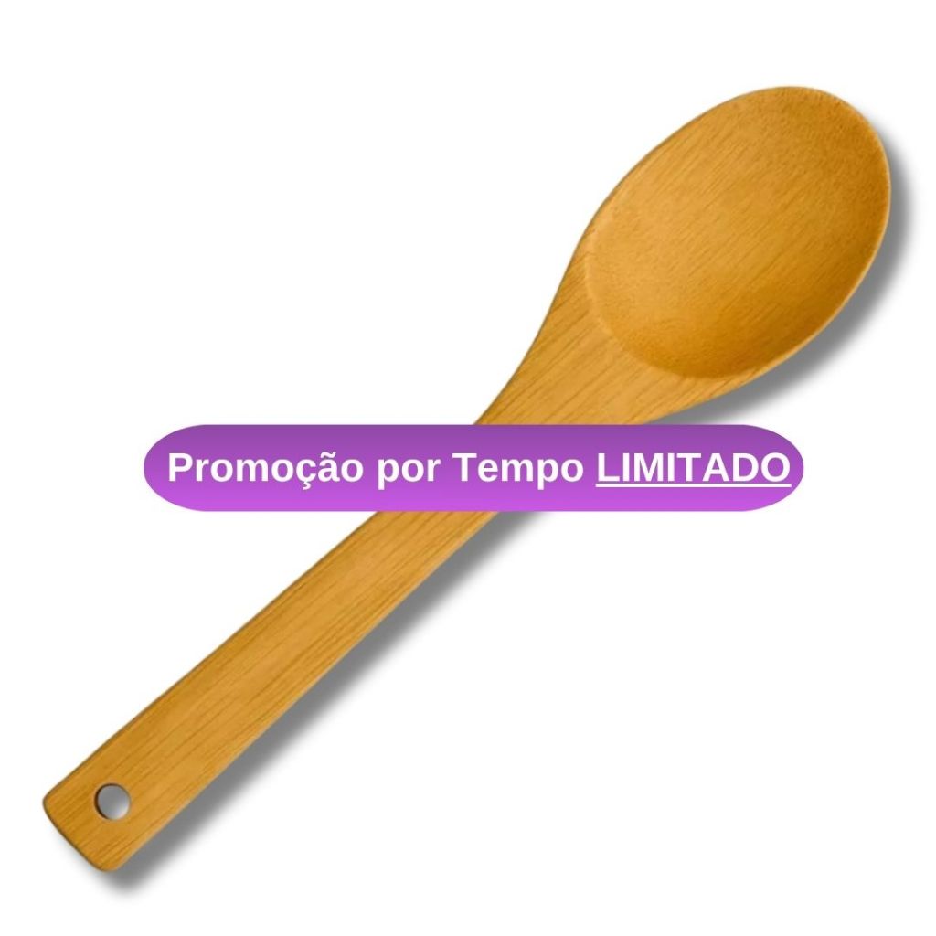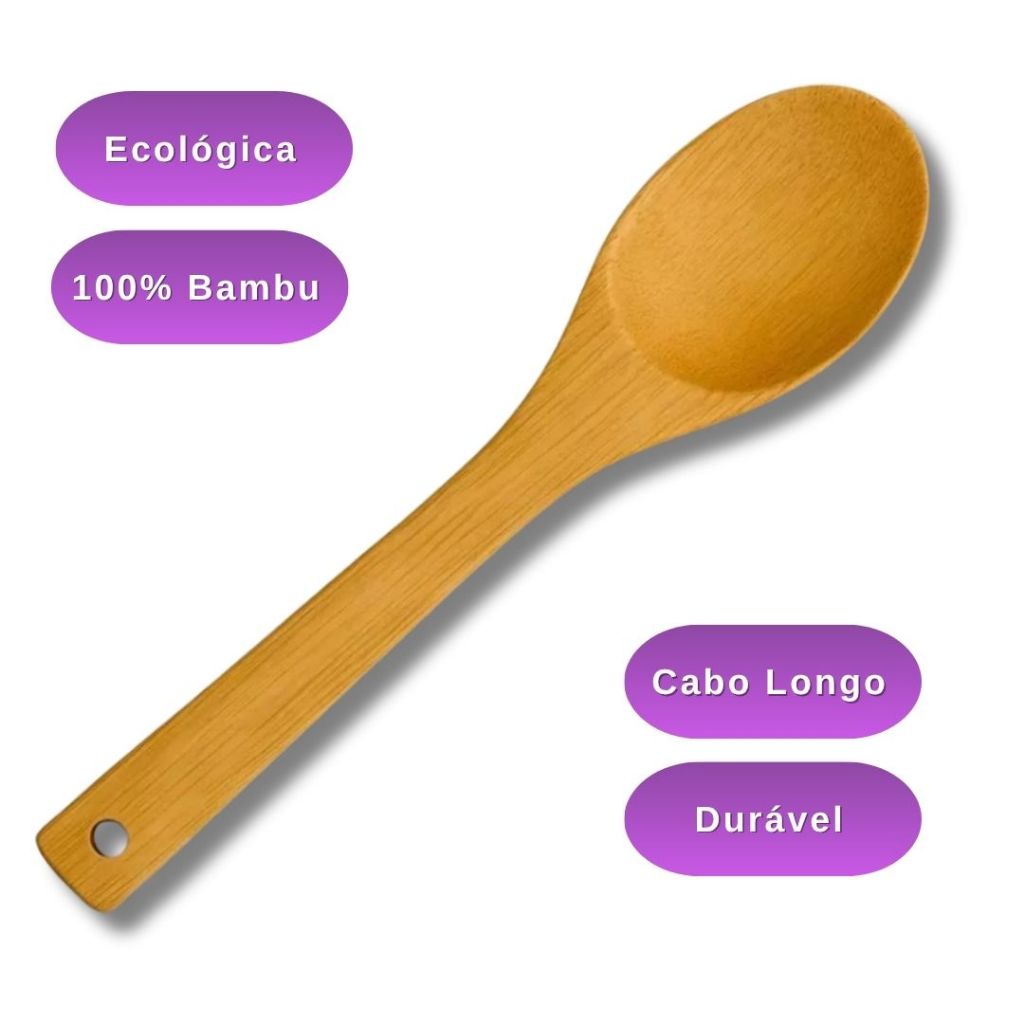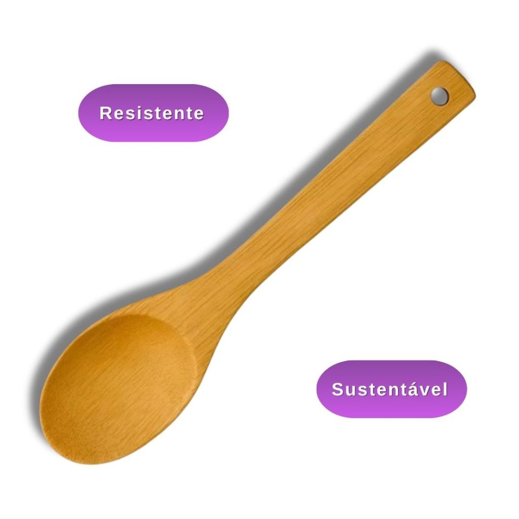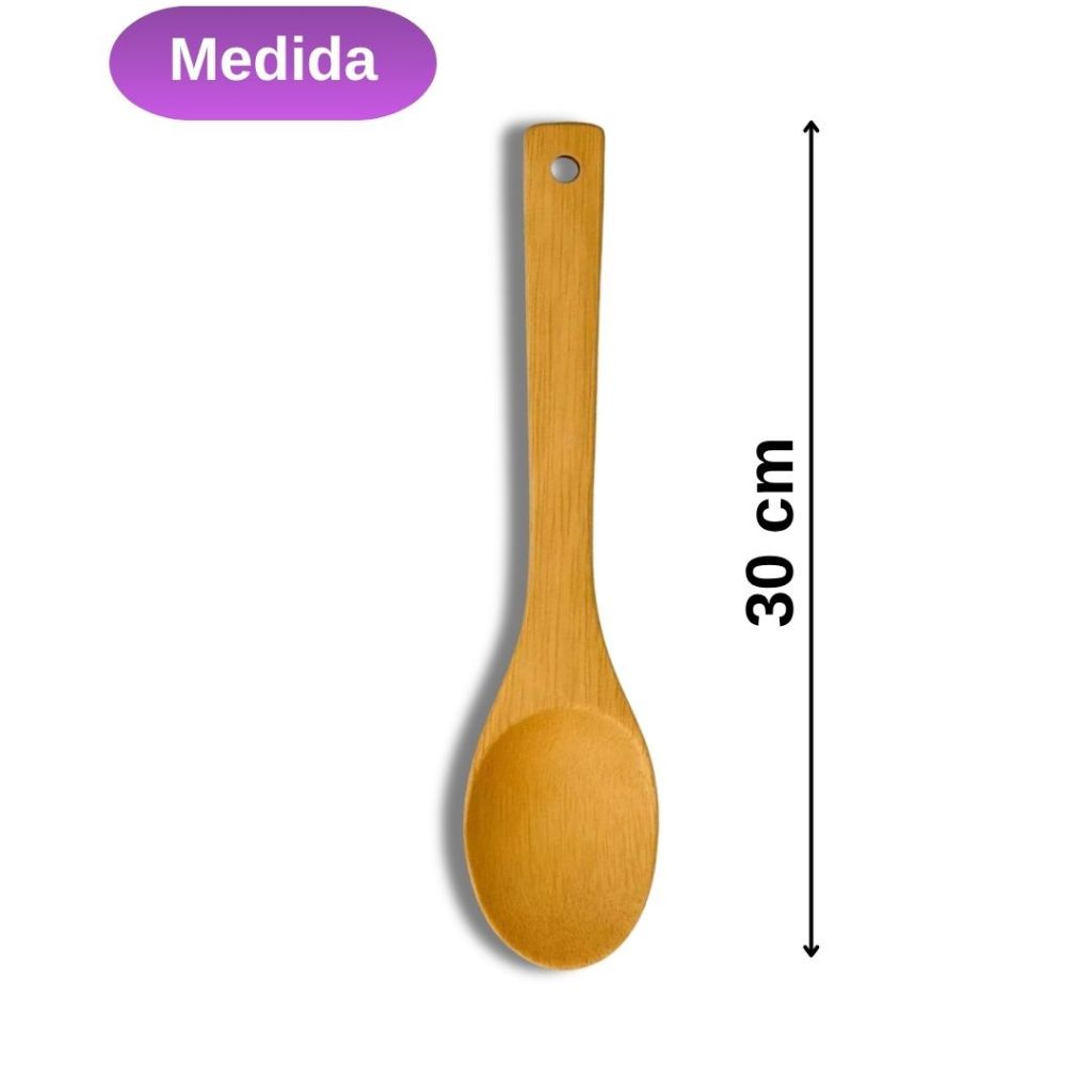 Colher de Bambu 30cm Para Cozinha Gourmet - Utensílio de Madeira Bamboo Natural Resistente