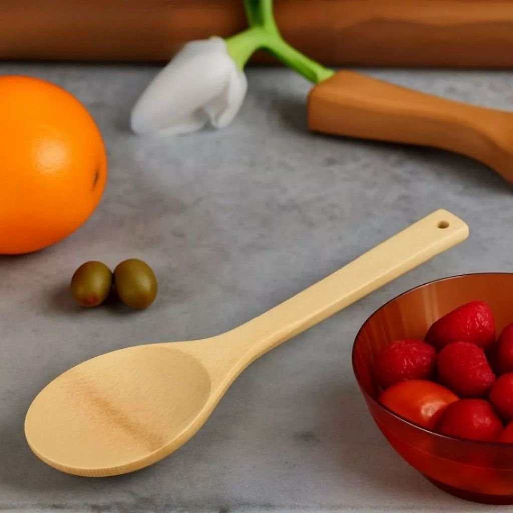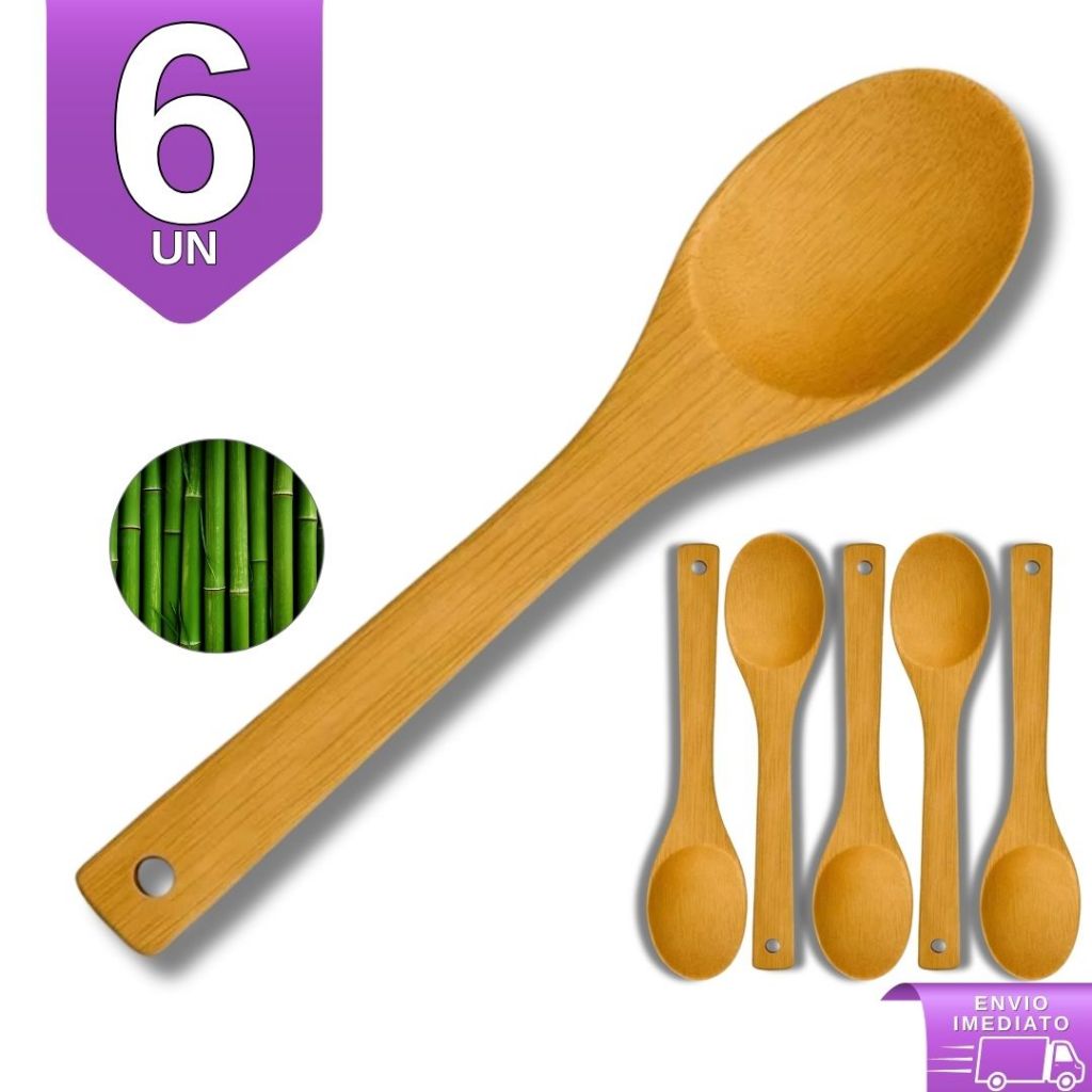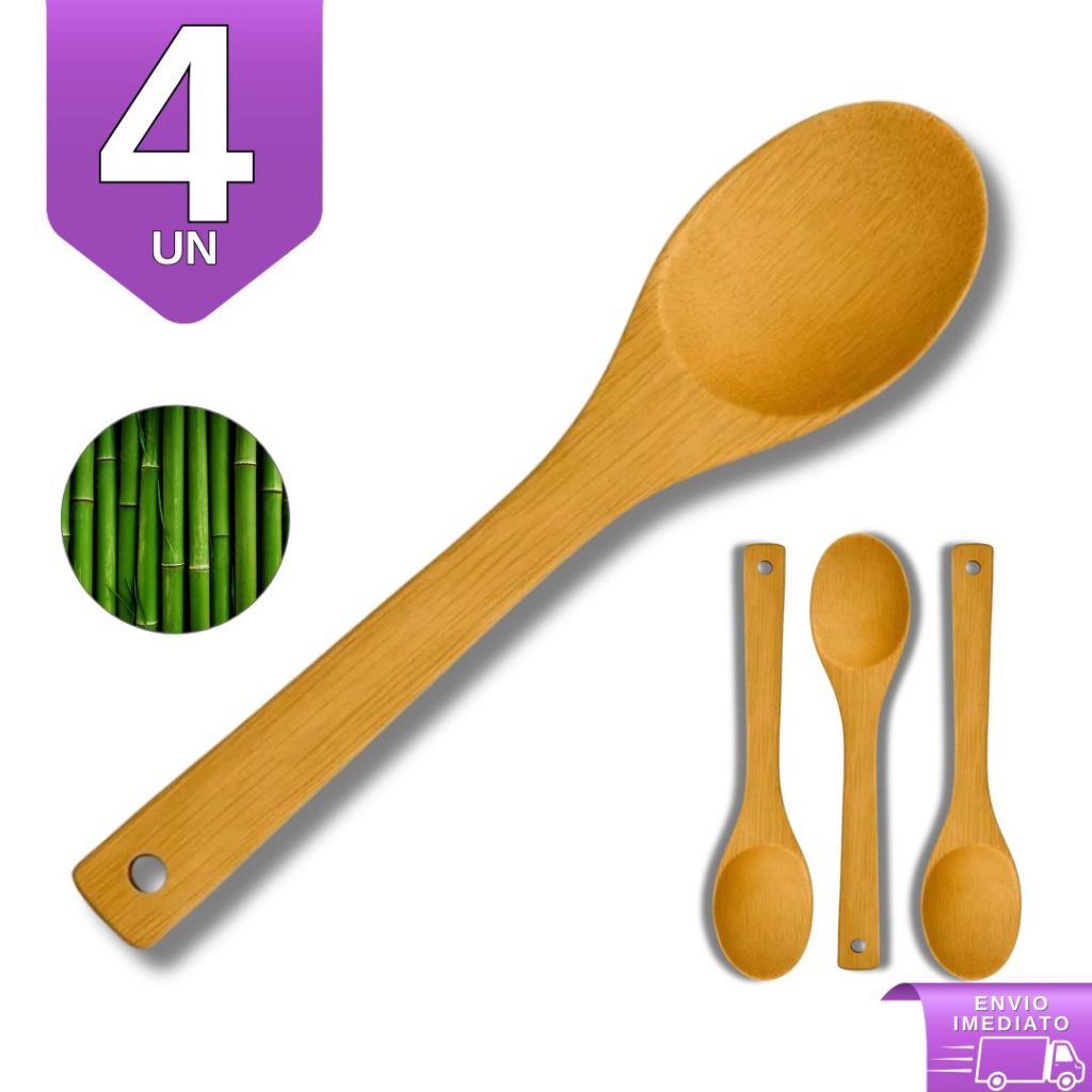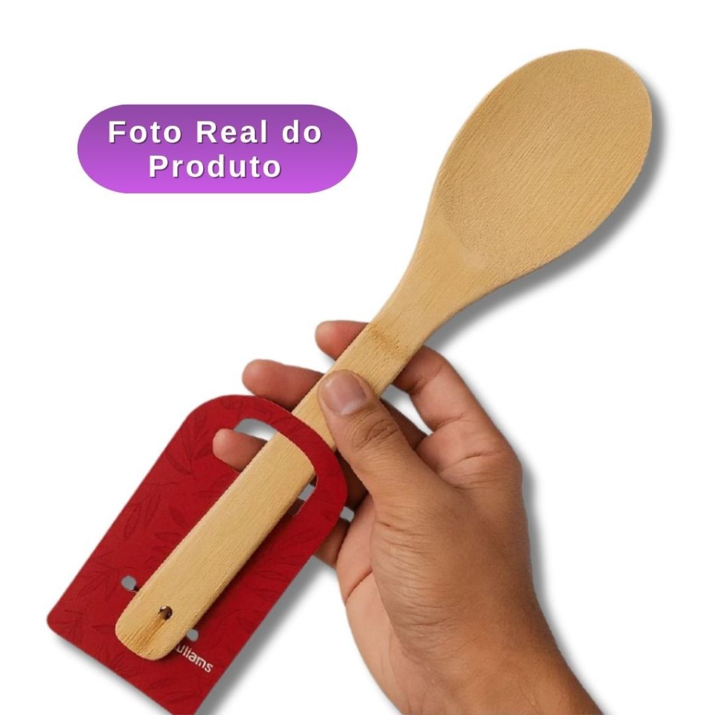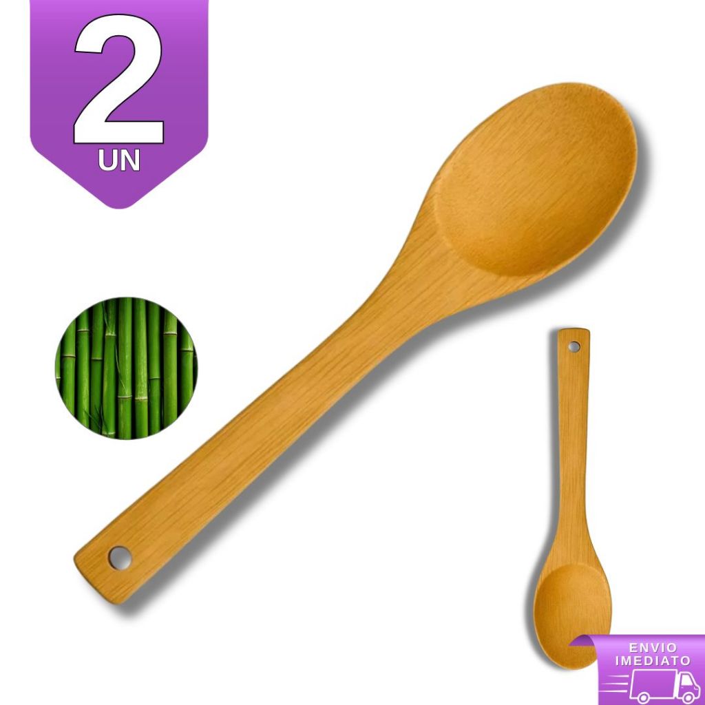 Colher de Bambu 30cm Para Cozinha Gourmet - Utensílio de Madeira Bamboo Natural Resistente
