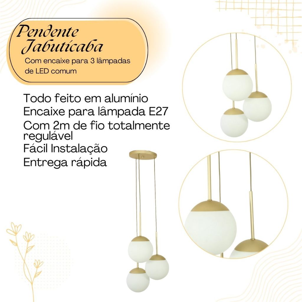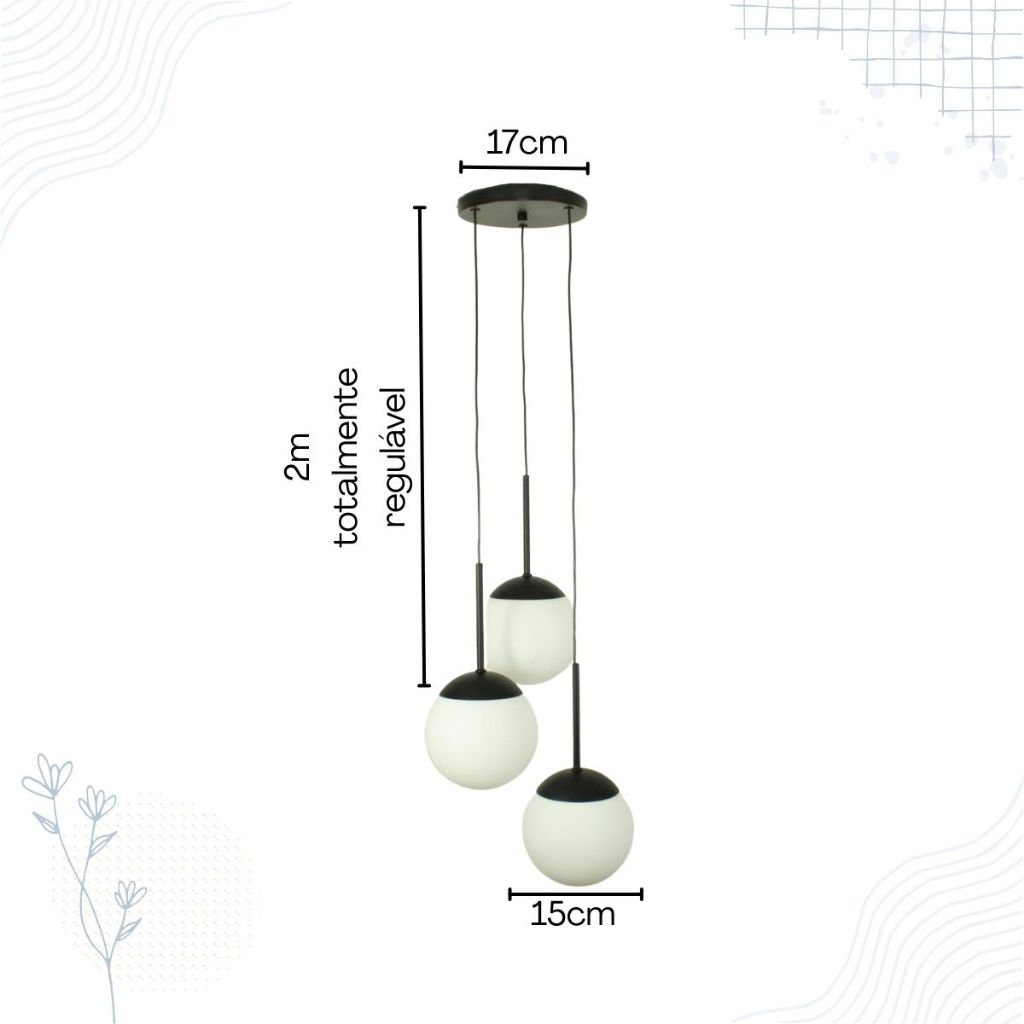 Lustre Pendente Jabuticaba 3 Globos E27 Para Sala