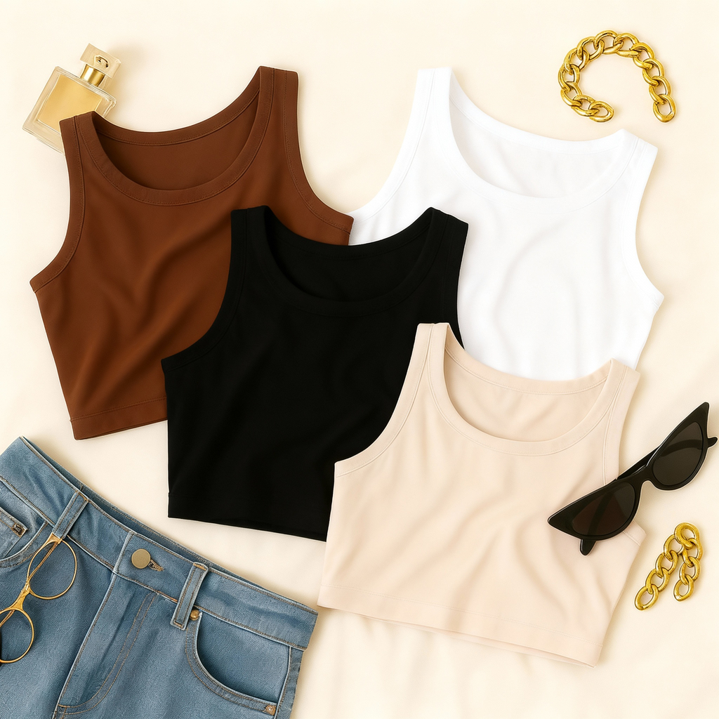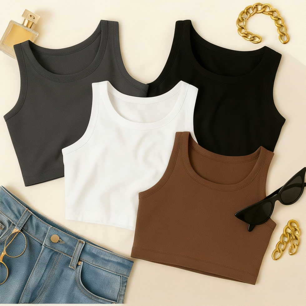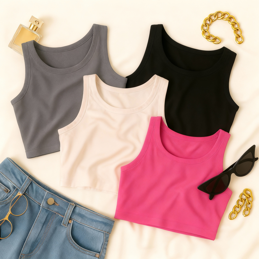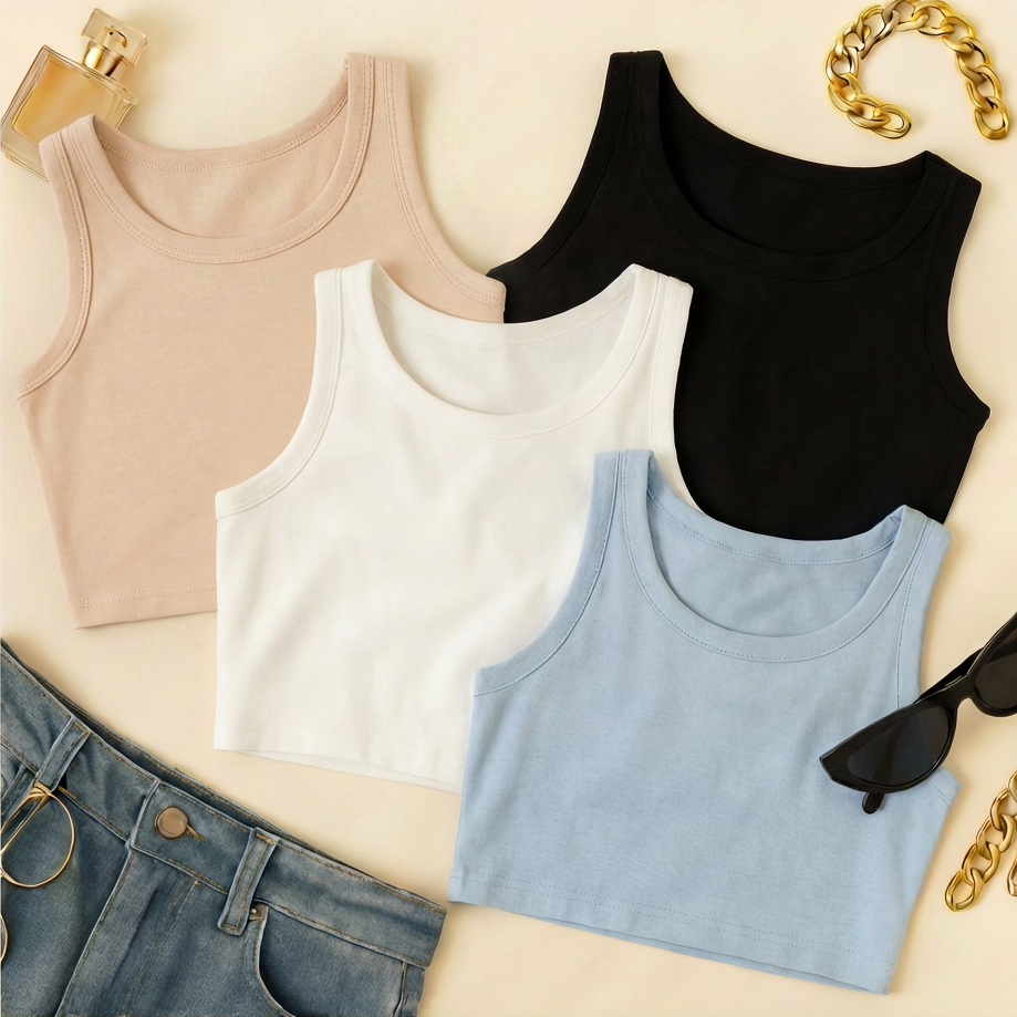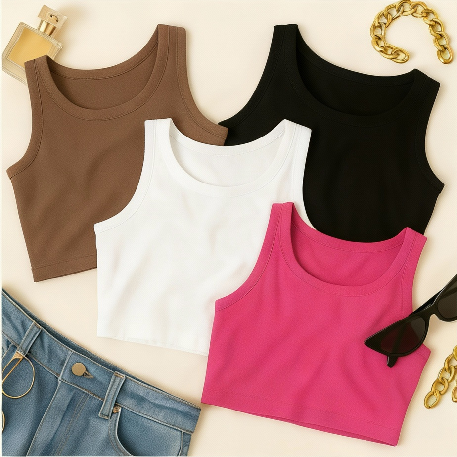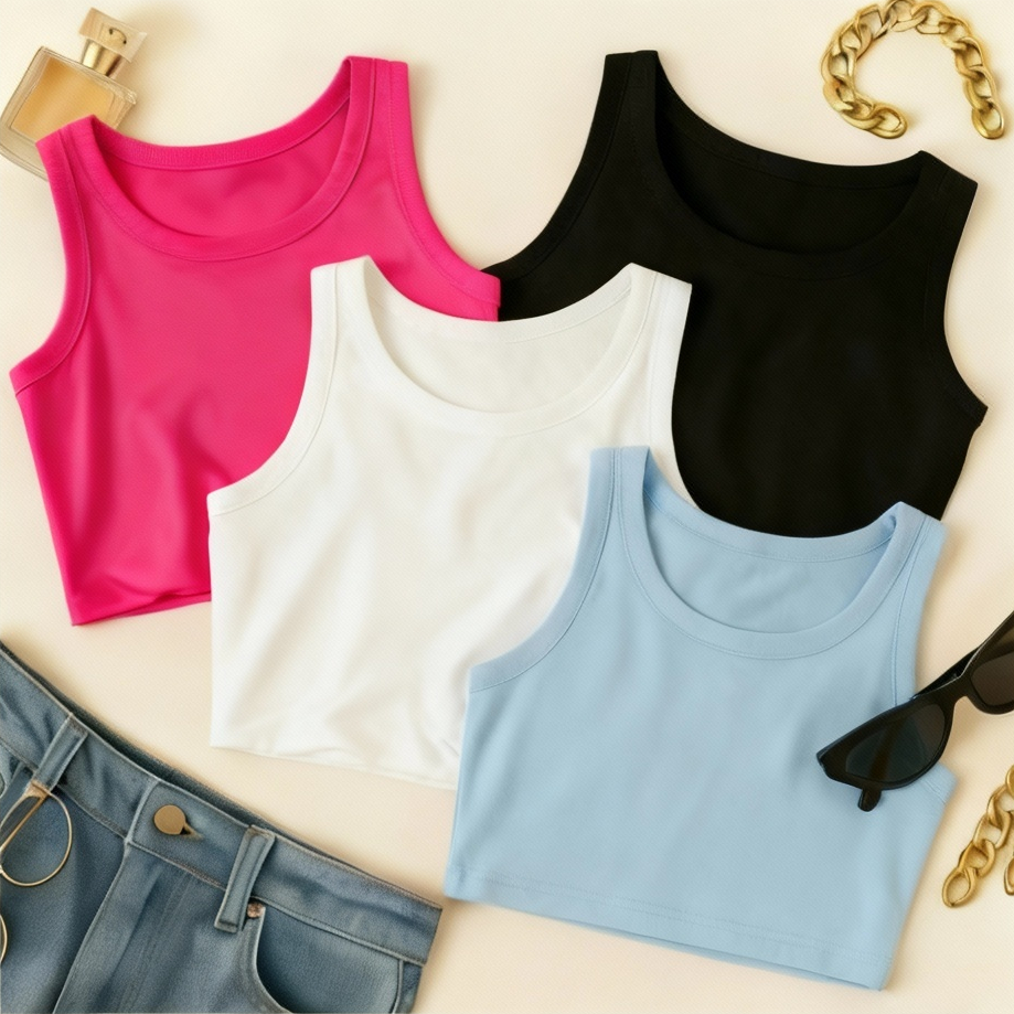 KIT 4 Cropped Feminino Top Blusa Suplex Lisa Basica Feminina