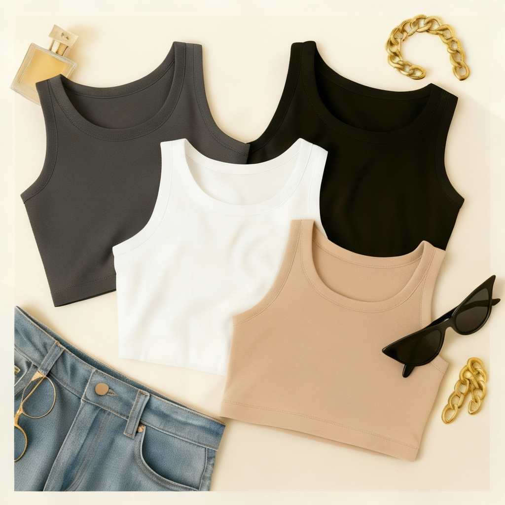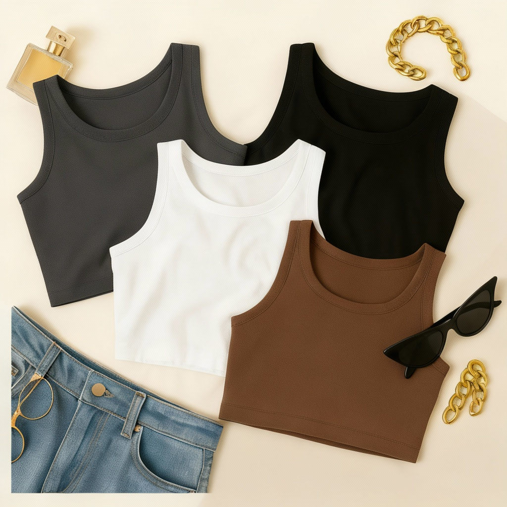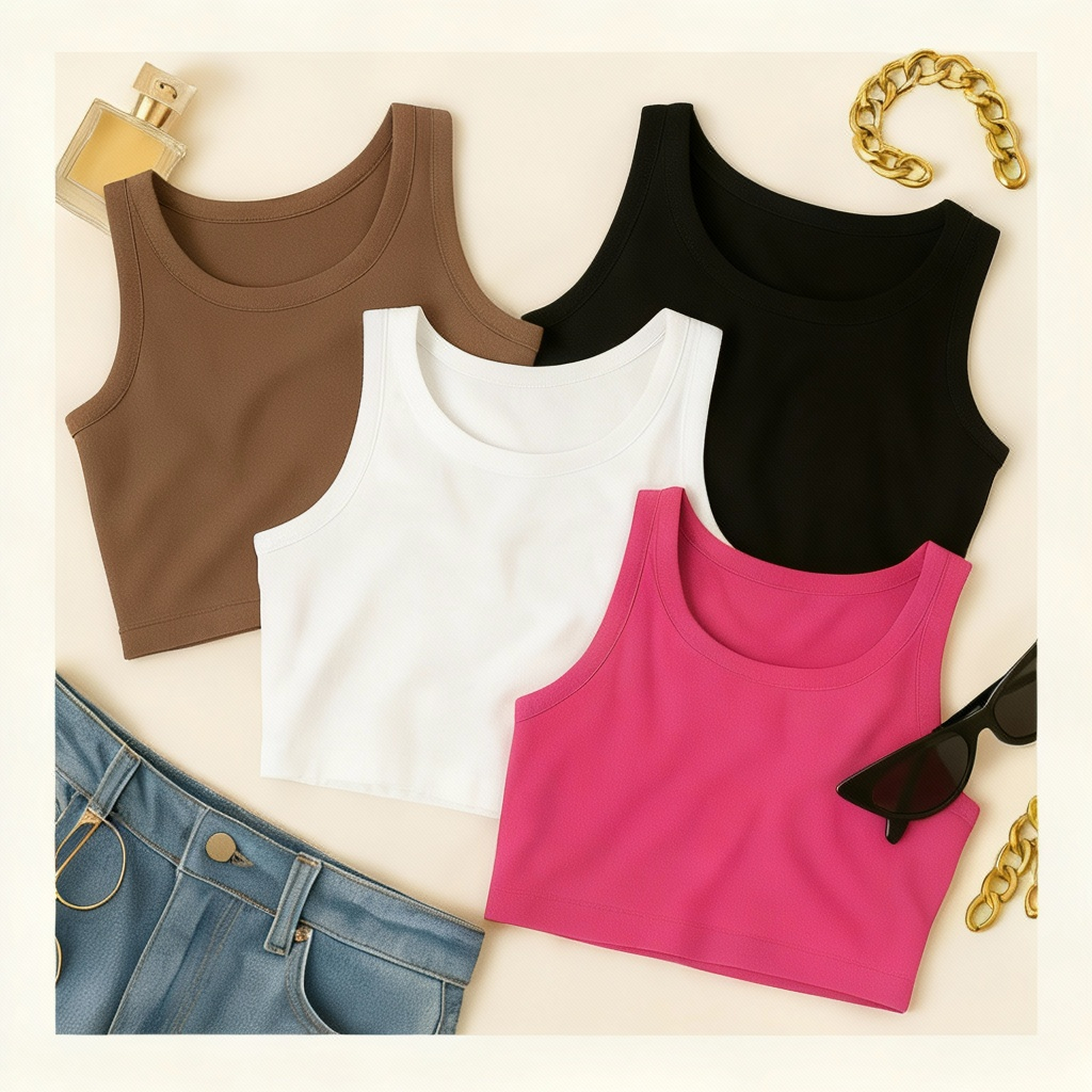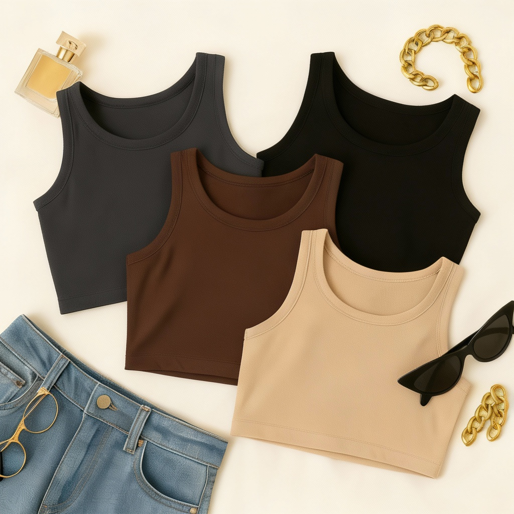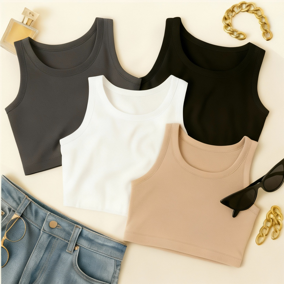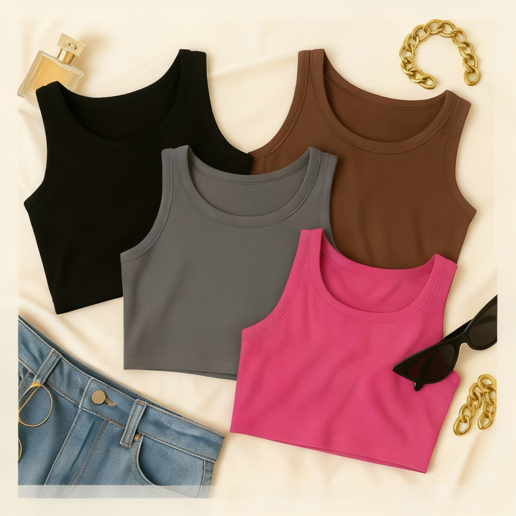 KIT 4 Cropped Feminino Top Blusa Suplex Lisa Basica Feminina