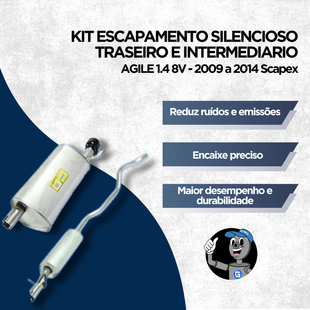Kit Escapamento Silencioso Traseiro e Intermediario do Agile 1.4 8V Scapex 2009 a 2014
