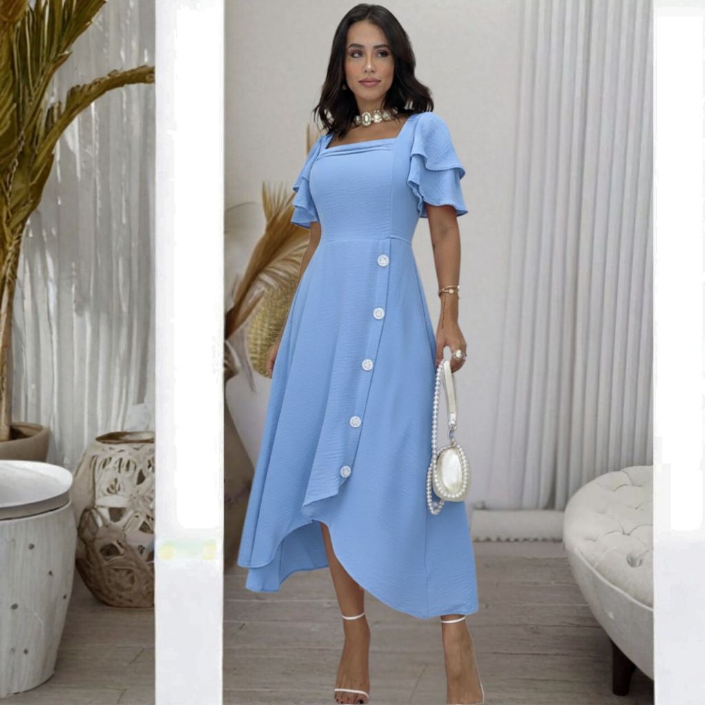 Vestido Feminino Midi Plus Size Soltinho Moda Cristã Lindo