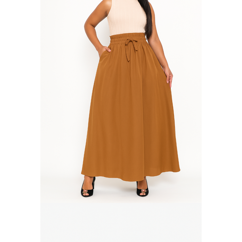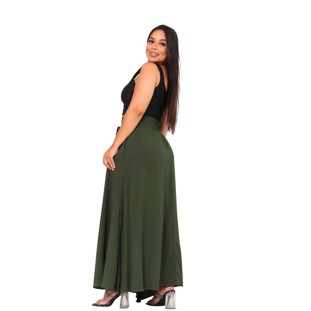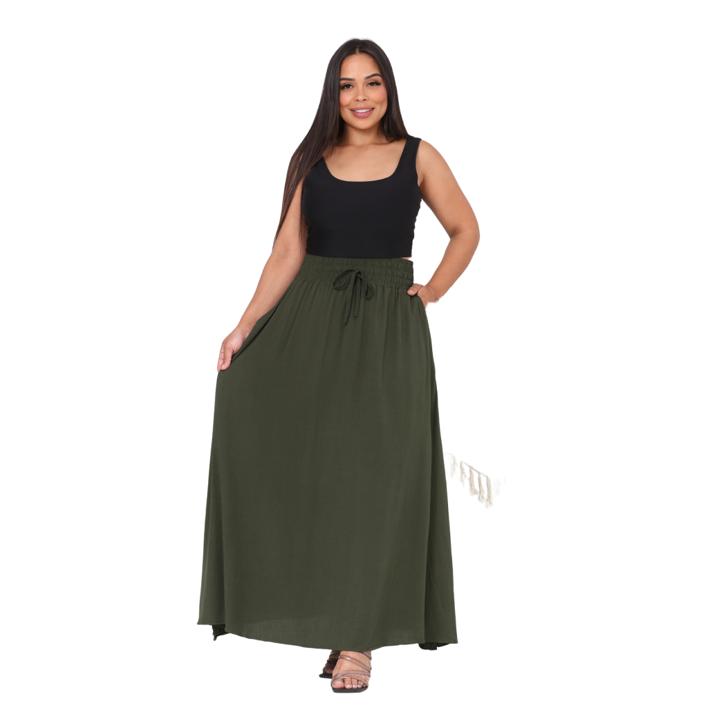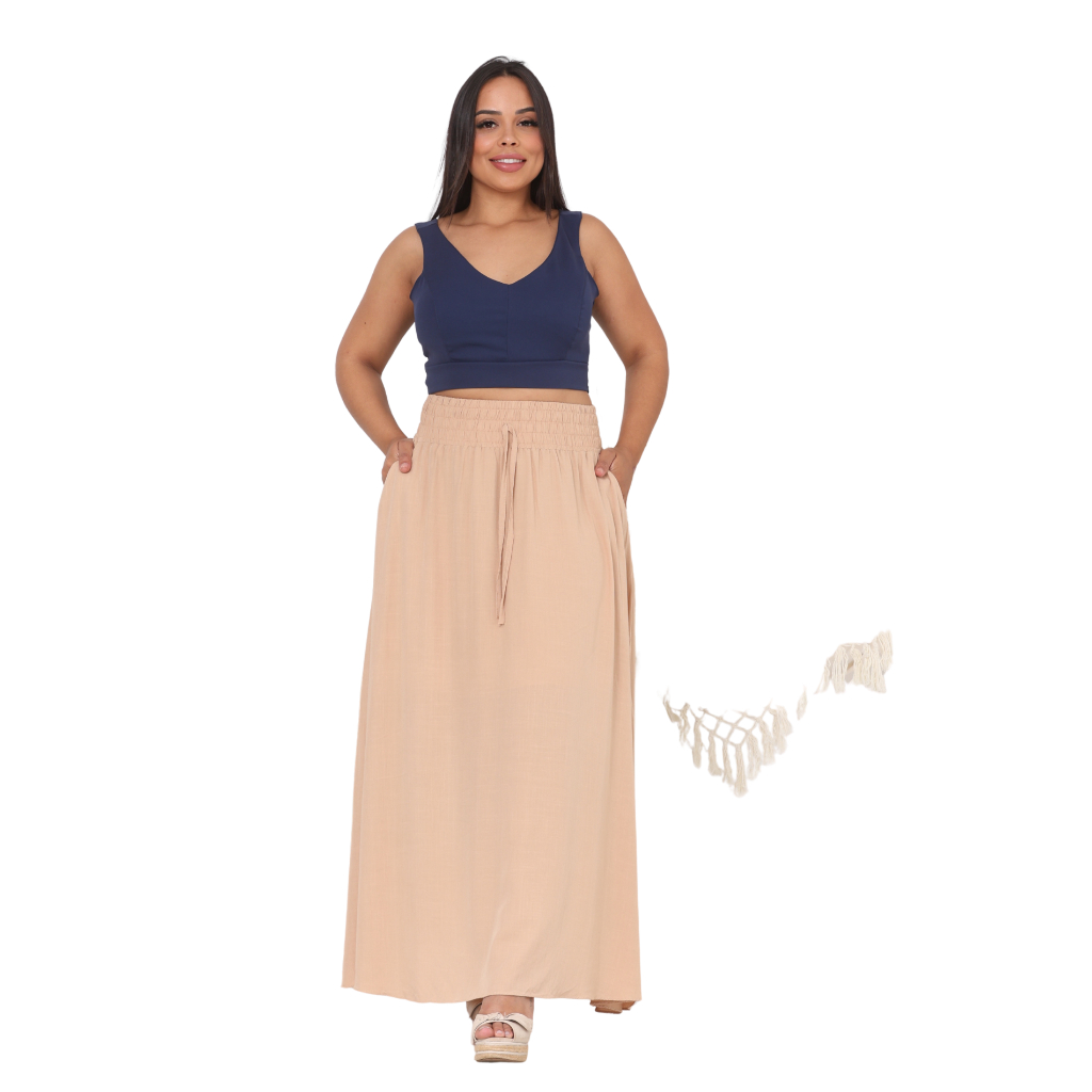 Saia Feminina Moda Evangélica Em Viscolinho Cintura Alta Com Bolso e Fenda Na Lateral